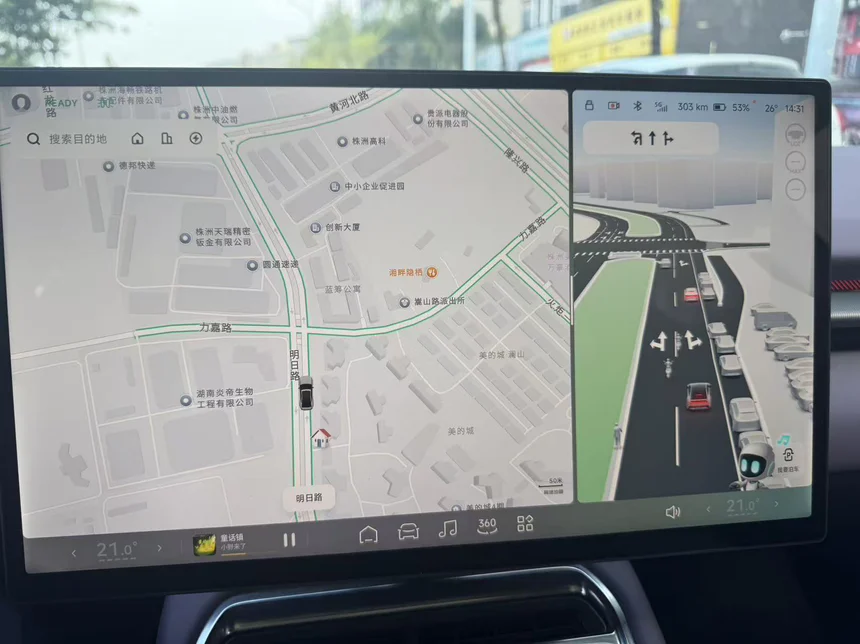 我最爱它的原因,是它带来了前所未有的预判力与安心感。传统导航在复杂立交桥或连续分岔路前,语音提示有时会让人犹豫。而车道级导航SR,在车机大屏上清晰渲染出真实道路场景,并用动态箭头将我所在的车道、需要驶入的车道以及旁边车辆的实时位置,以一目了然的方式呈现出来。比如上周在机场高速的多岔路口,屏幕上提前一个虚线框就标出了我应驶入的匝道,并伴有醒目的地面箭头引导,让我在川流不息的车流中,无需猜测,平稳准确地完成了变道。