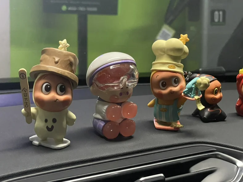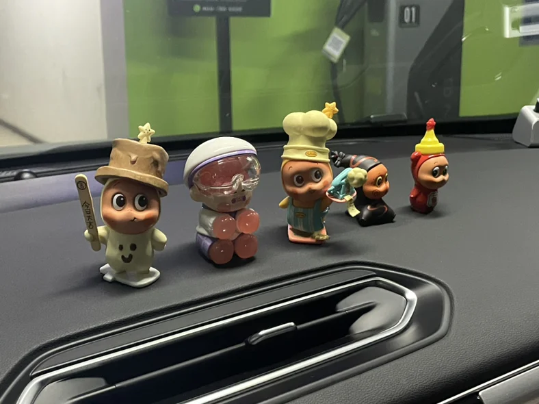 圣诞氛围营造起来,又到了一年中最爱的圣诞节啦,特别在车上放了几个泡泡玛特小孩子们哦~~