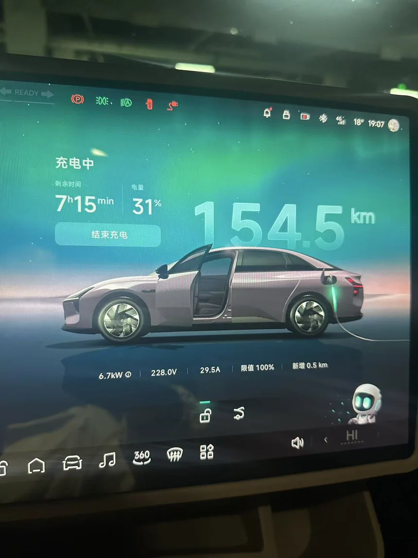 续航表现完全打消了我的焦虑。CLTC标称600km的续航,日常市区通勤开空调、听音乐,实际续航达成率能稳定在80%以上,每天50公里通勤下来,一周充一次电完全够用。周末短途自驾试过高速120km/h巡航,实测满电可跑400公里左右,达成率67.7%,中途在服务区喝杯咖啡的时间,30分钟就能从30%充到80%,补能效率超高。而且液冷恒温电池+IP68级防尘防水,不管是冬季低温还是夏季高温,都能放心开,安全感拉满。