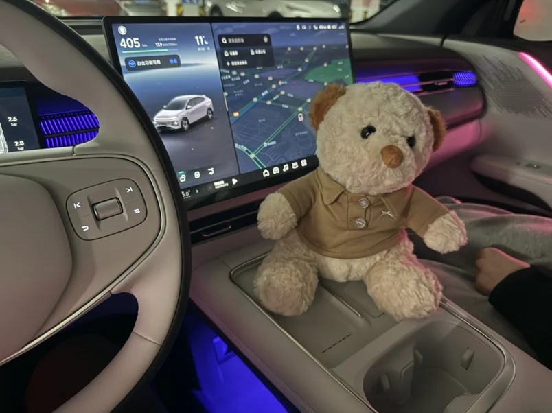 不得不提的是自动驾驶啦 提车当天从交付中心回家全靠智驾🚗ヾ(・ω・`。) 非常好用,变道和掉头都很丝滑🤗交付当天还送了小玩偶超可爱🤩