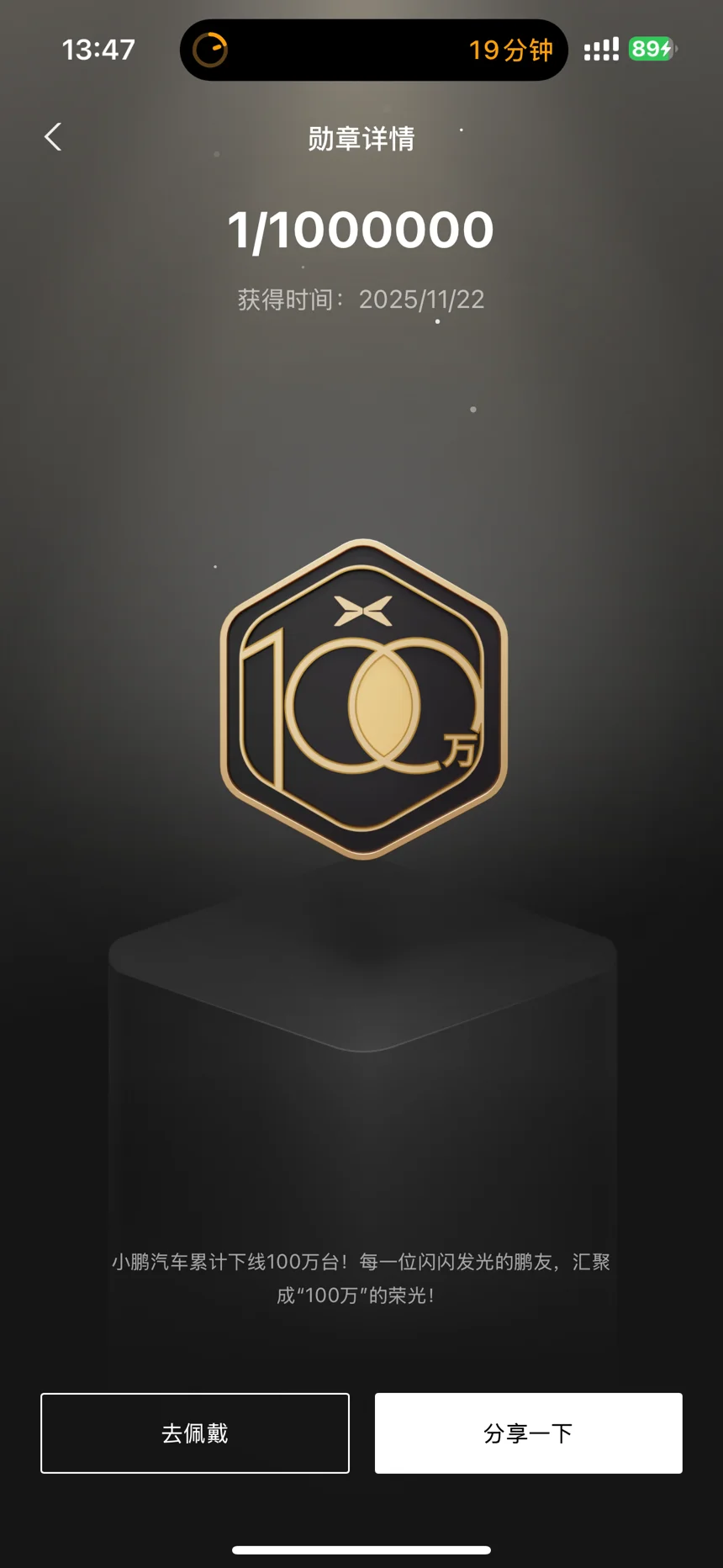 10月提车小鹏G6的时候,真没料到能这么巧——刚好赶上小鹏交付一百万台车,我这台居然就是那“一百万分之一”,简直是提车附赠的小幸运!