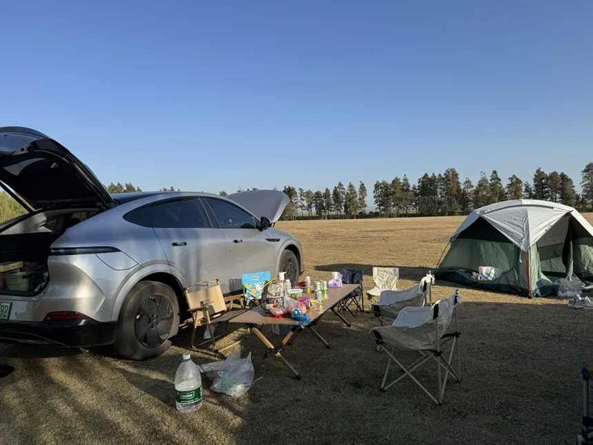 作为电车新手,最担心的续航问题压根没出现。这几次自驾跨省,来回几百公里,中间就充了一次电,能耗表现很实在。而且5门5座的空间挺够用,后备箱塞下行李箱和露营小椅子毫无压力,朋友坐后排也不挤。