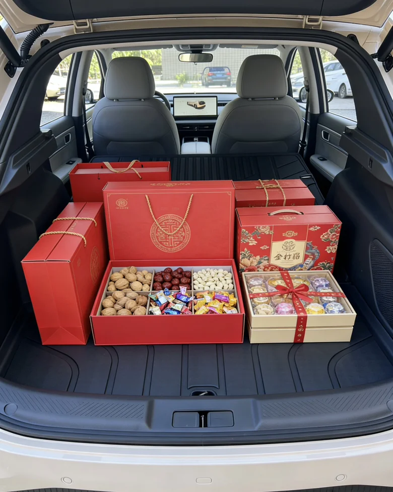 午后准备出发去老家,后备箱又换了一番光景。给爸妈带的厚棉被叠得方方正正,孩子的小画板、玩具车靠在一旁,还有精心挑选的腊味礼盒、手工糕点,满满当当地堆了一后备箱。小鹏MONA M03的装载力出乎意料,放倒后排座椅后,连给老家带的折叠桌都能轻松塞下,仿佛把一整个家的温暖都打包好了。