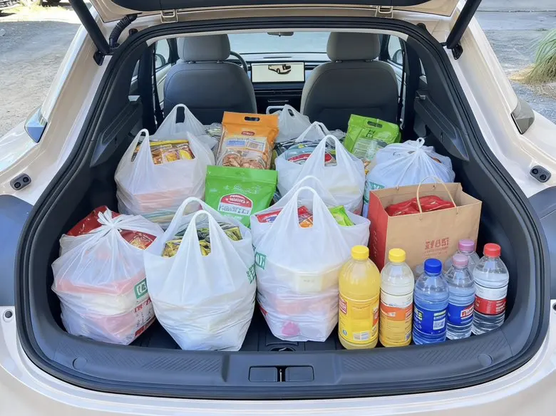 清晨的菜市场氤氲着水汽,我拉着小鹏MONA M03的后备箱门,把冬至家宴的食材一件件往里放。现宰的羊肉裹着保鲜膜躺在下层,旁边是装满荠菜和香菇的保鲜盒,手工饺子皮和剁好的肉馅占了中间层,就连奶奶叮嘱的糖蒜、米酒,也能在后备箱的储物格找到专属位置。这方空间像个贴心的收纳师,把冬日的鲜味儿都妥帖收进了车里。