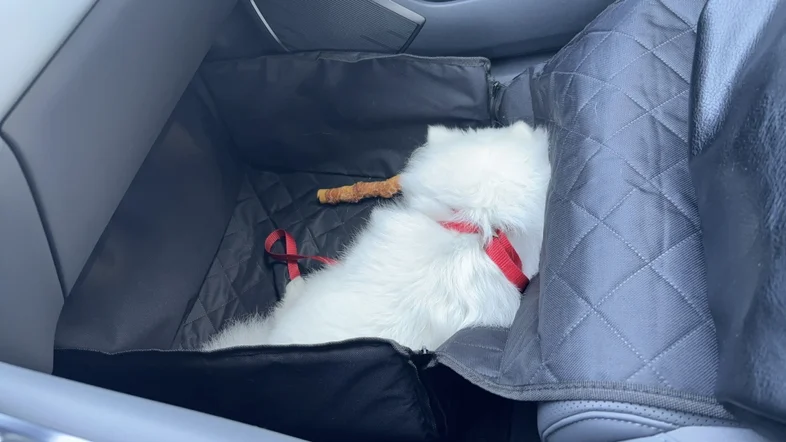 对了,还有我的狗子终于有个可以安身之处,之前下雨下雪带宠物出门都不方便,现在走哪带哪,天冷不方便带下车直接打开宠物模式,再也不用担心它在车上冻坏了。