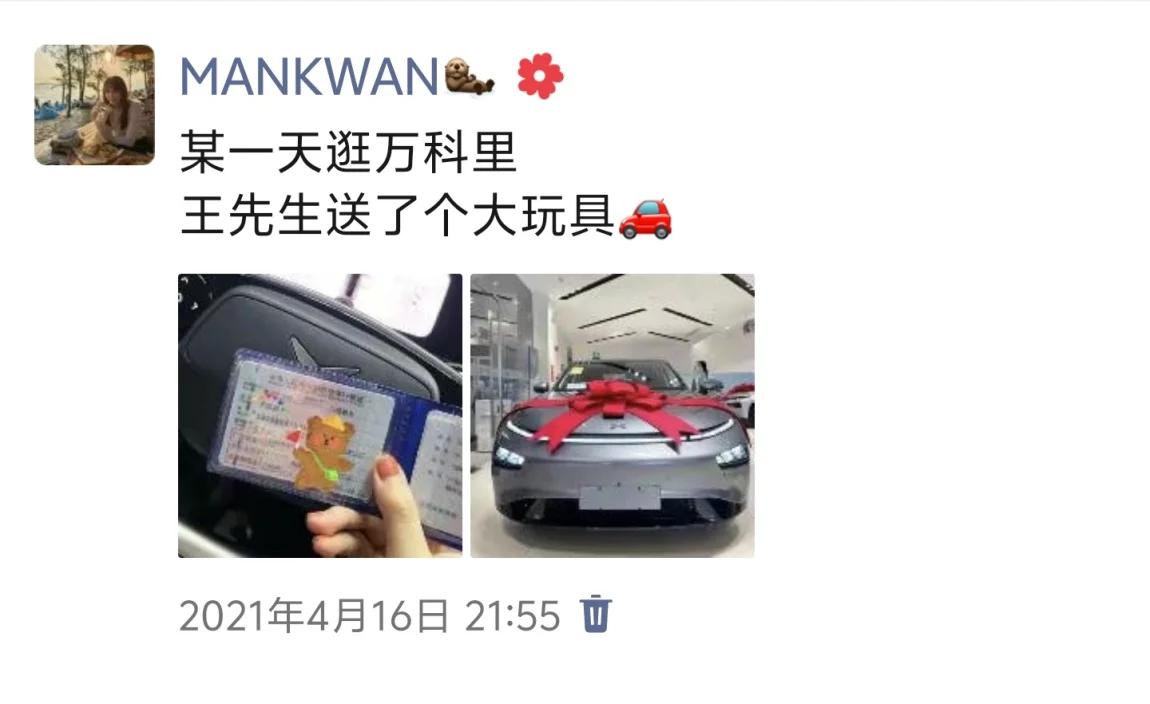 现在我是同时两台小鹏的女人了哈哈哈哈。谢谢老公,又要出钱又要当司机哈哈哈哈。