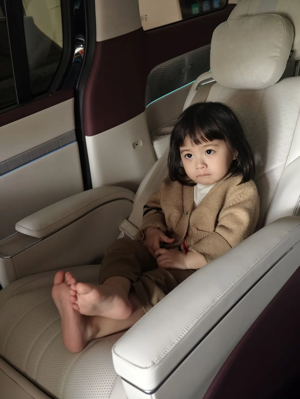 最后的最后,我满不满意先不说,我家小公主很满意哈哈哈哈,从看到车就没下来过,拍照也不拍了。零重力一调,小电视一放,舒服的很。