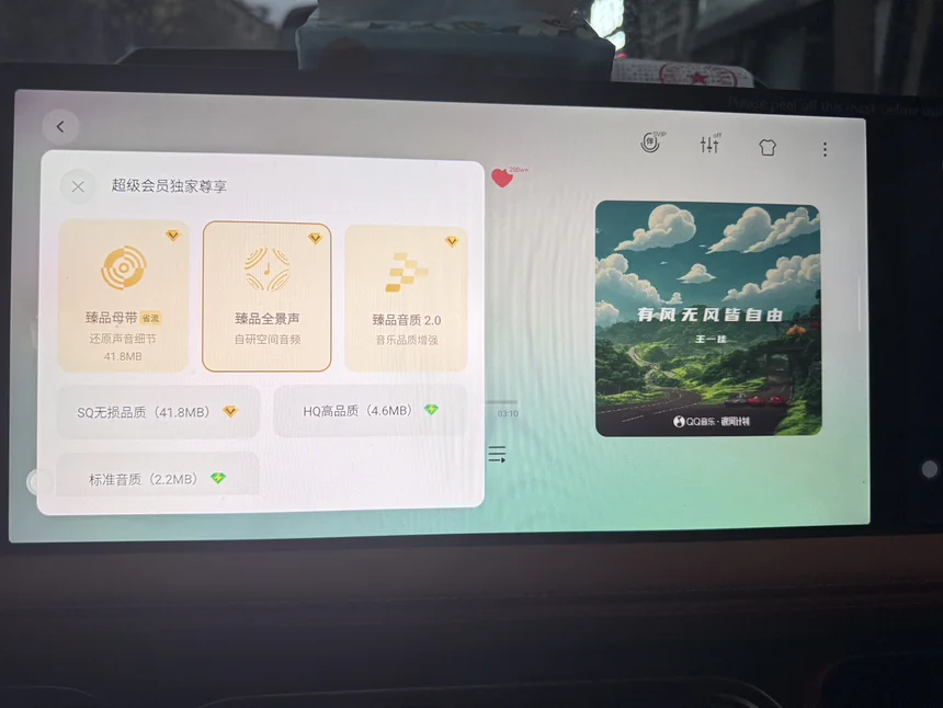 #2025年我最喜爱的智能座舱功能# 最喜欢这个软件,实现了很多好玩的功能,推荐一个音质超好的设置,在x-pad下载QQ音乐手机版(的开个超级会员绝对物超所值),音效选择臻品全景声这个真的非常的棒,明显感觉到天空声道声厂非常突出,高音喇叭也特别特别到位。非常喜欢,推荐大家一起使用,使用见图第一次发帖还请见谅😌,推荐歌曲《有风无风皆自由》