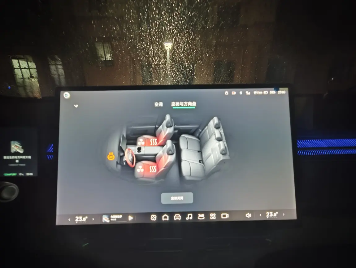 南方的冬至总伴着阴雨,前一晚露天停放的车玻璃蒙着厚雾。出发前 5 分钟启动 “自动除雾”,系统自动联动 AC 除湿和外循环,等坐进车里,30 秒雾气就已消散无踪,车窗干净得能映出路边的腊梅。座椅加热驱散椅面的潮气,脚下干爽不粘腻,哪怕外面湿冷刺骨,车内依然温暖干爽,带着刚煮好的汤圆去见亲友,一路都能保持体面舒适。