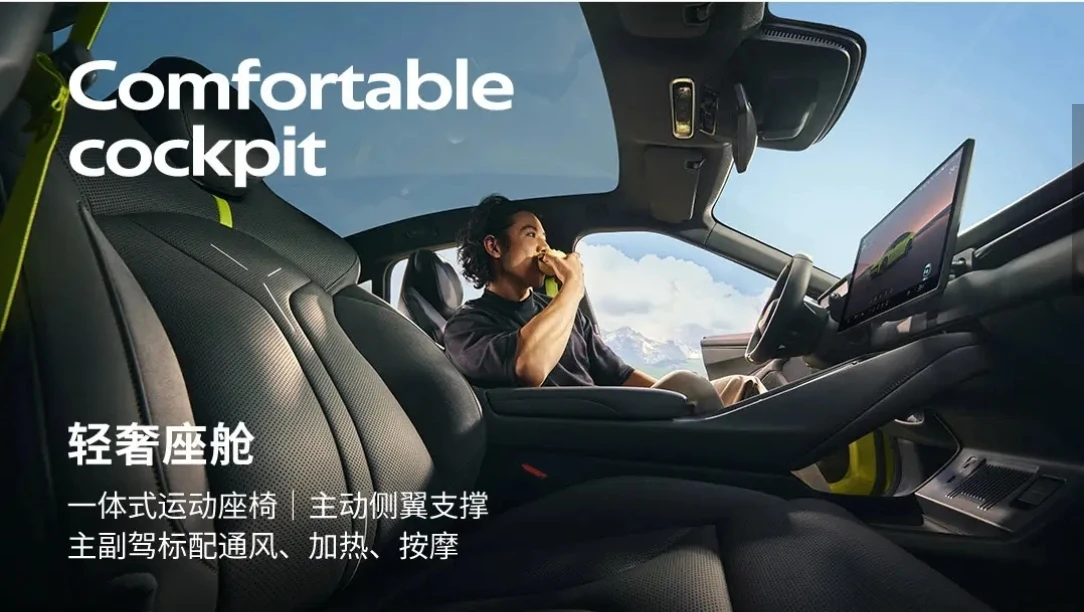 那令人青睐的舒适配置,Nappa真皮运动座椅具备通风、加热与按摩功能,过弯时主动侧翼便会自动支撑腰部,即便长途驾驶也丝毫不觉疲惫;23颗HIFI级扬声器打造出7.1.4声道环绕音效,配合星瀑式氛围灯与智能香氛系统,仿佛置身于移动的音乐厅之中;超大天幕可隔绝99.99%的紫外线,后排空间宽敞,并配有娱乐屏,让乘客能够安逸从容地享受每一刻美好时光。