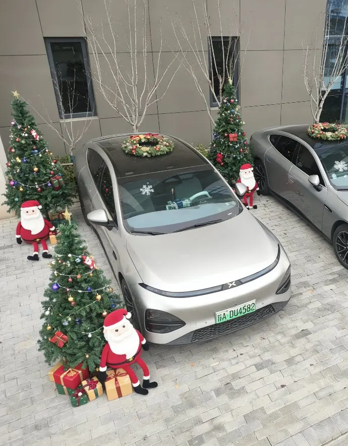 两台小鹏车并排停在一起,引擎盖布置圣诞节场景,圣诞装饰与科技车身完美融合,成为冬日里一道亮眼的风景,也让鹏友们的圣诞相聚,多了一份专属的仪式感。@鹏友大管家