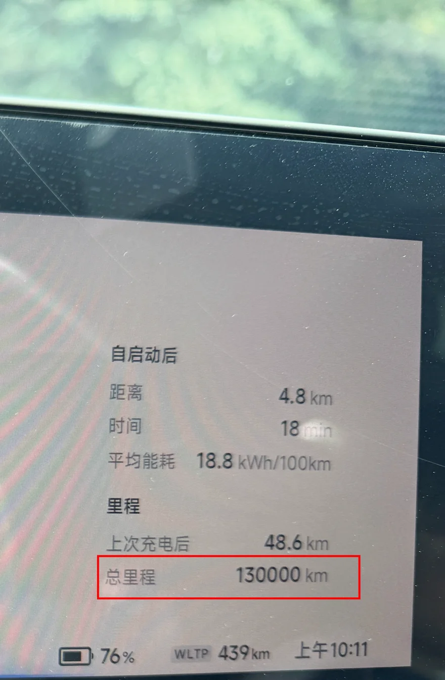 *这也意味着,我刚提车的时候跑的高速长途续航和现在13万公里的续航达成情况相差无几。