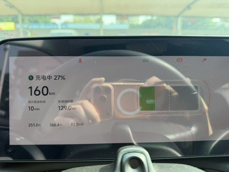 ⑵充电速度:电池除了续航问题问得比较多外,第二问问得多是充电速度有没有慢下来?我的回答是“并没有”。在我前段时间用快充实测,充电速度依然能达到92kw速度。