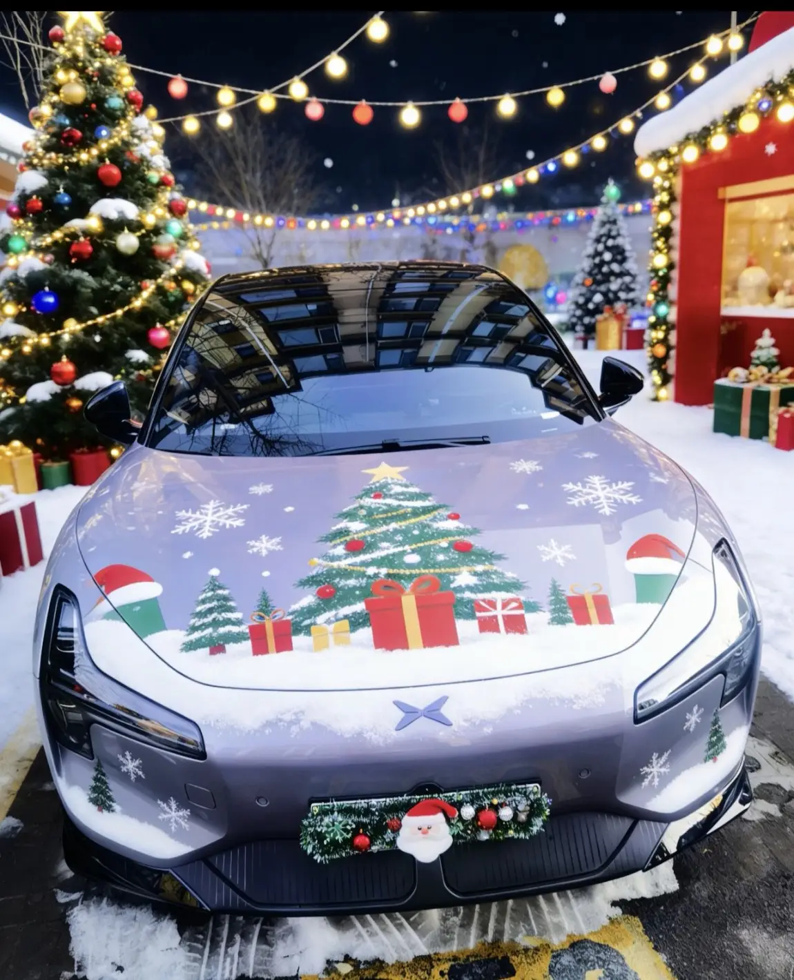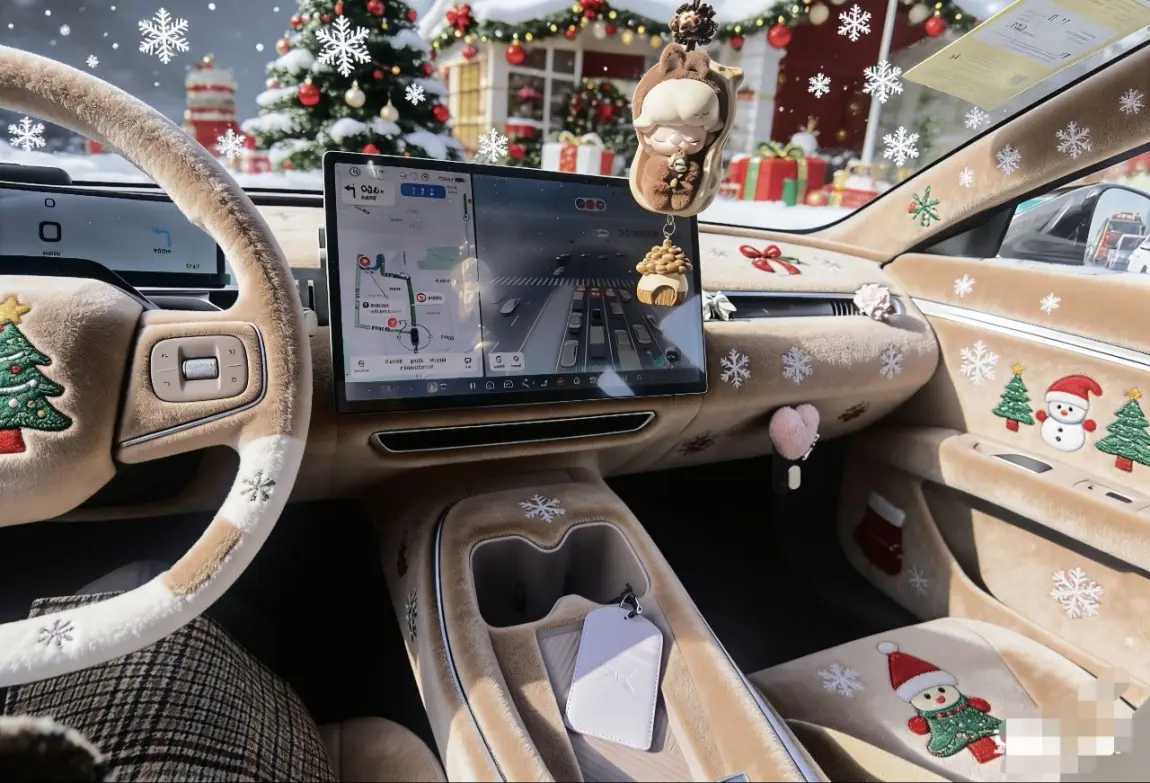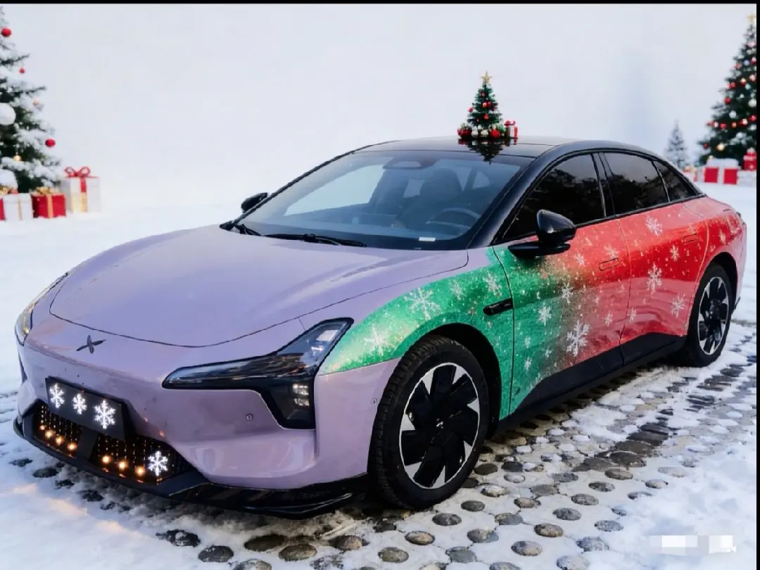 Ai涂装后小鹏MONA 03变身节日限定款,红翠绿渐变花纹超吸睛,雪花灯效点亮冬日浪漫,这波颜值直接拉满!车身流转红绿渐变,格栅雪花灯闪闪发亮,车顶小装饰萌趣十足~圣诞限定内饰上线!米棕色内饰搭配着雪人雪花和圣诞树,温馨十足,太适合这个冬季了!#我的圣诞魔力座驾#