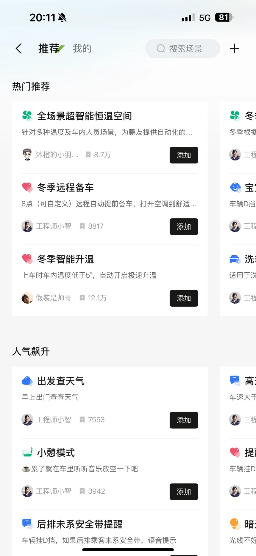 冬至天寒,小鹏的冬季buff太懂人心了。出门前先在APP商店调个智慧场景,勾选座椅加热和电池预热,20分钟后下楼,拉开车门就被暖意裹住——方向盘不冰手,座椅暖烘烘的,连脚垫都带着温度。