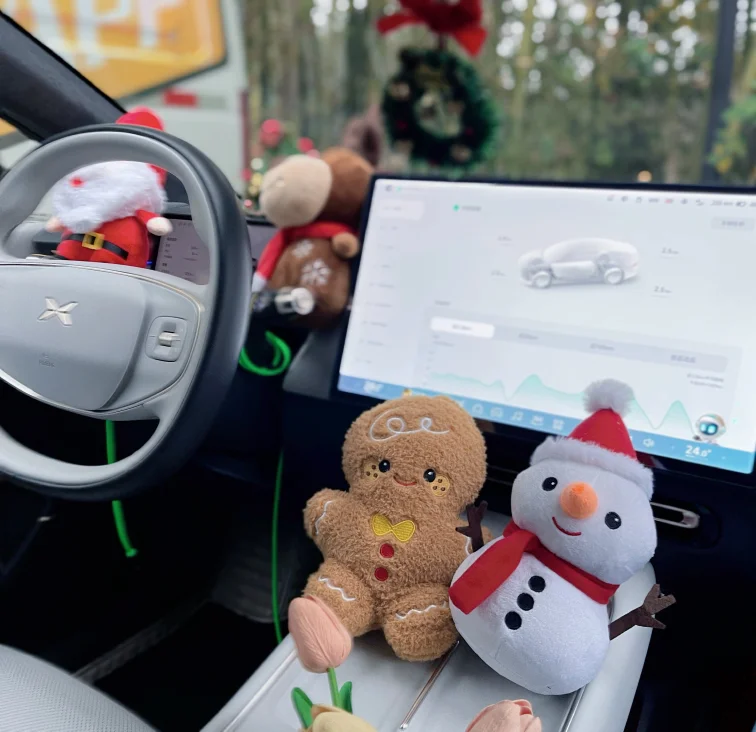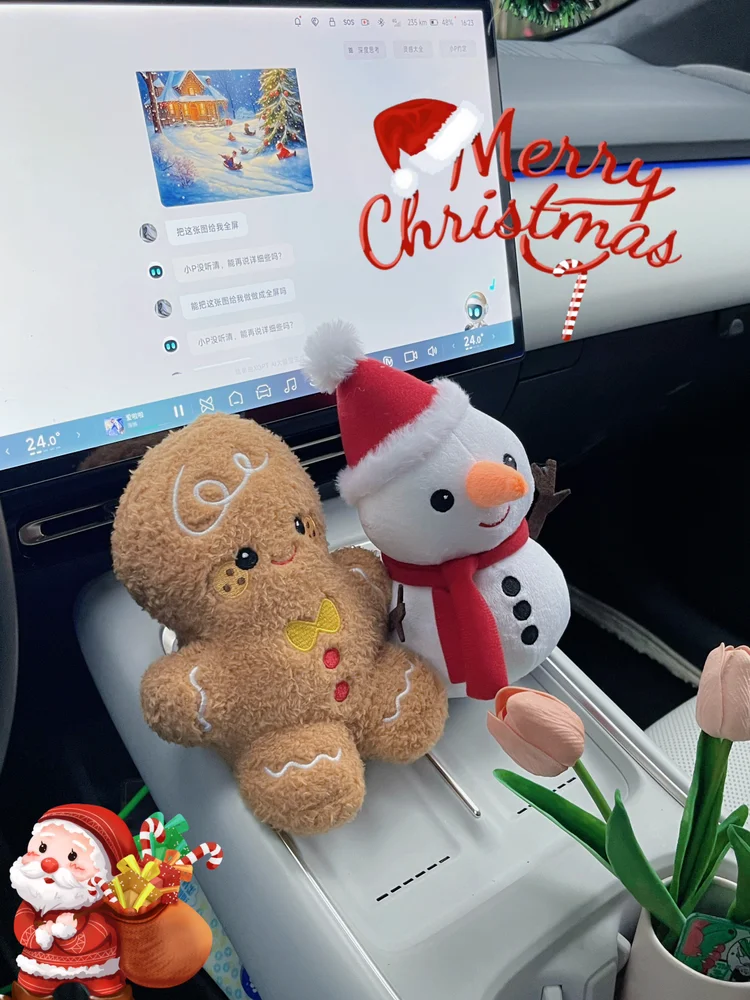 再把憨态可掬的圣诞老人玩偶、灵动俏皮的圣诞小鹿、圆滚滚的雪人公仔,还有带着焦糖香气的姜饼人布偶,一一安置在中控台,座椅旁、扶手边。这些可爱的小家伙们挤在一起,瞬间让整辆车变身成街头最亮眼的移动圣诞礼盒。每当车门打开,节日的暖意便会扑面而来,连路过的行人,都忍不住回头多看几眼这份藏在车轮上的冬日浪漫。
