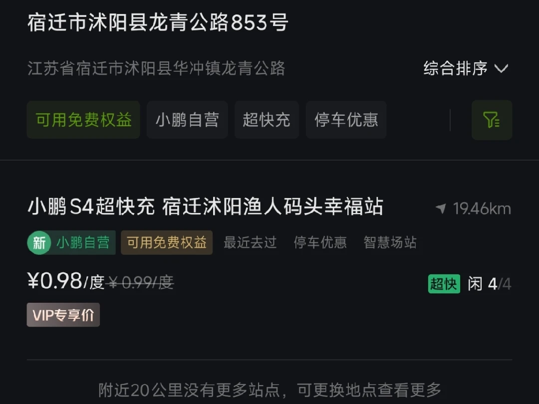 坐标:江苏宿迁沭阳县。全县只有一个小鹏充电桩,可以使用小鹏免费充电权益。能否考虑一下,在我们附近也提供一个第三方支持免费充电权益的站点,不然每年的充电权益都浪费了。