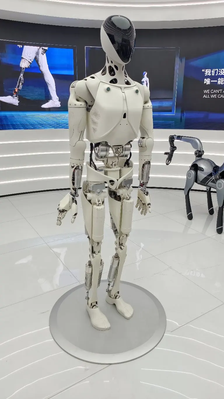 随后又参观科技展厅,看到了心心念念的“铁人”,似乎就是小P的原型机器人。