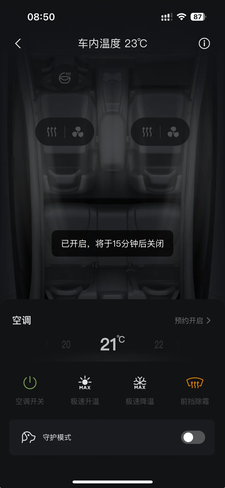 泉州的冬天湿冷入骨,以前早起开车,坐进车里那股凉气能从屁股窜到天灵盖!现在出门前手机远程开个控温,下楼时车里暖烘烘的,座椅还带着温温的触感,22℃的温度刚合适,再也不用哆哆嗦嗦等升温,还可以躲在车上看个电视。