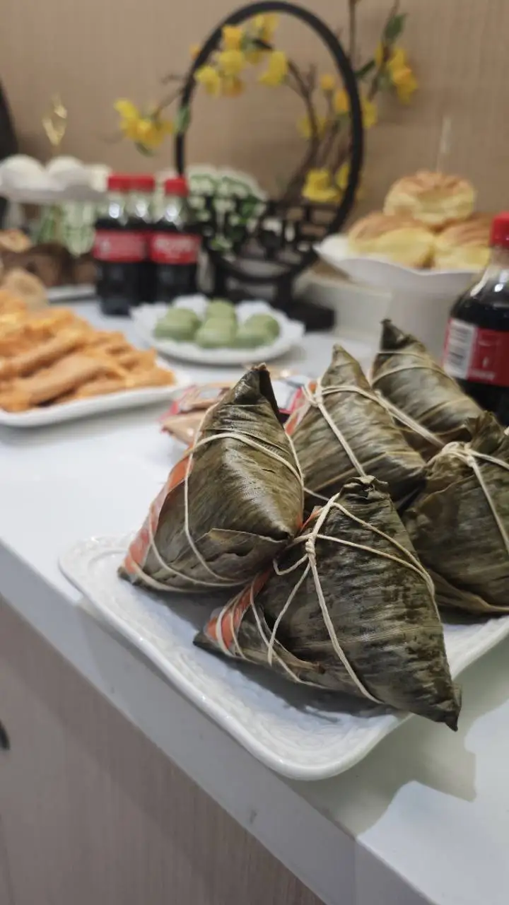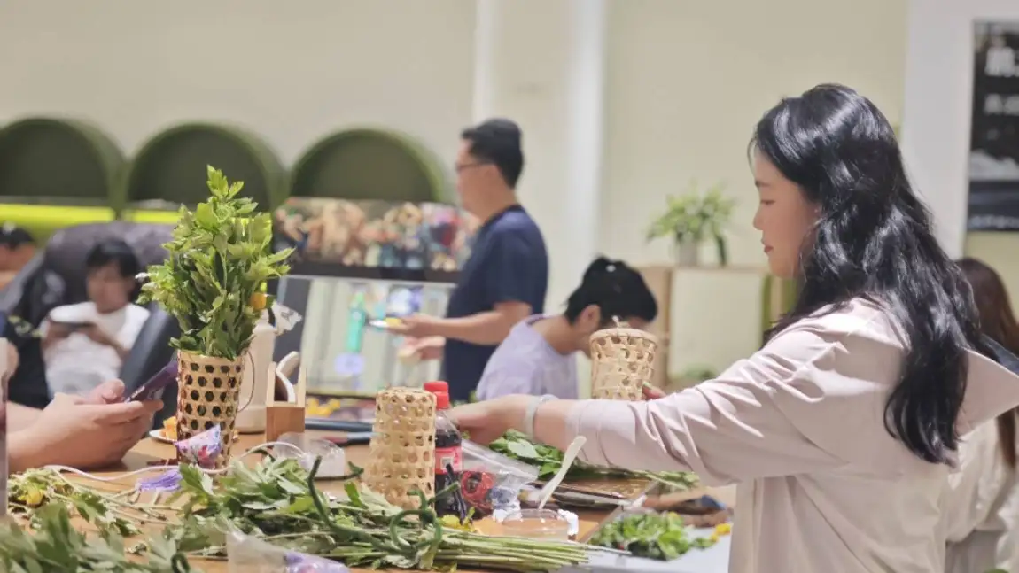 推开门瞬间就被治愈了:悬浮中控屏上跳动着龙舟动画,空气里弥漫着清冽的竹叶香,而长桌上铺满了新鲜的艾草、香樟叶和菖蒲。