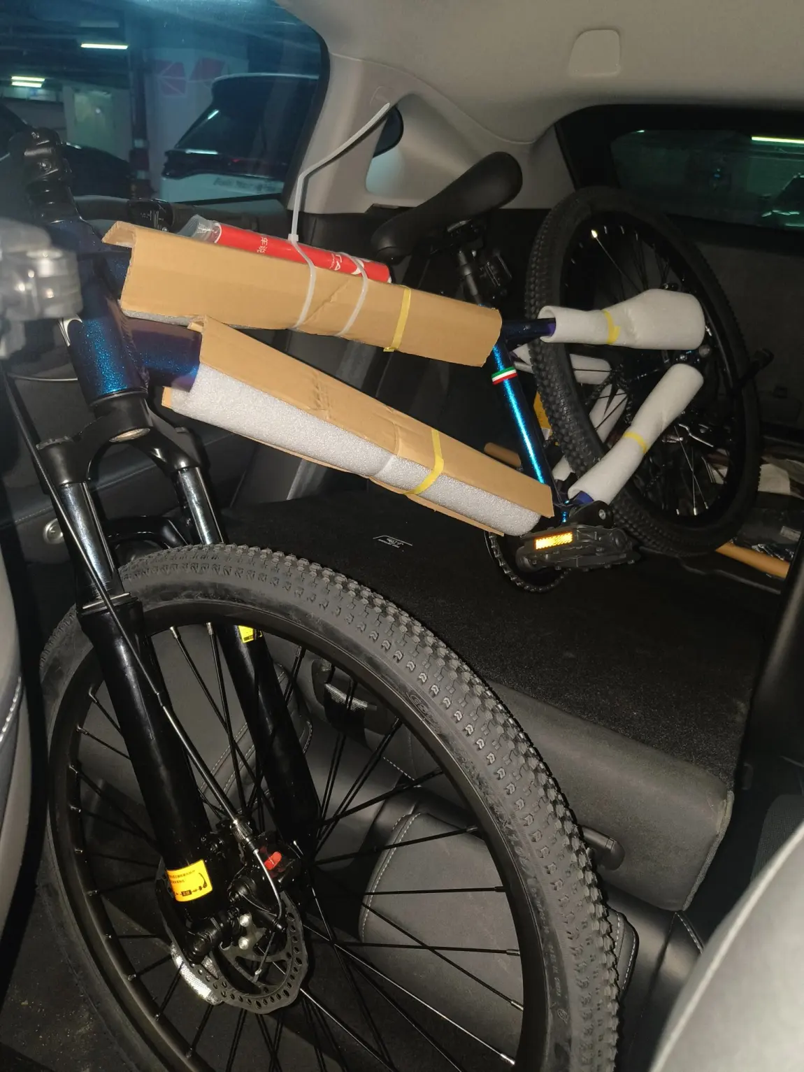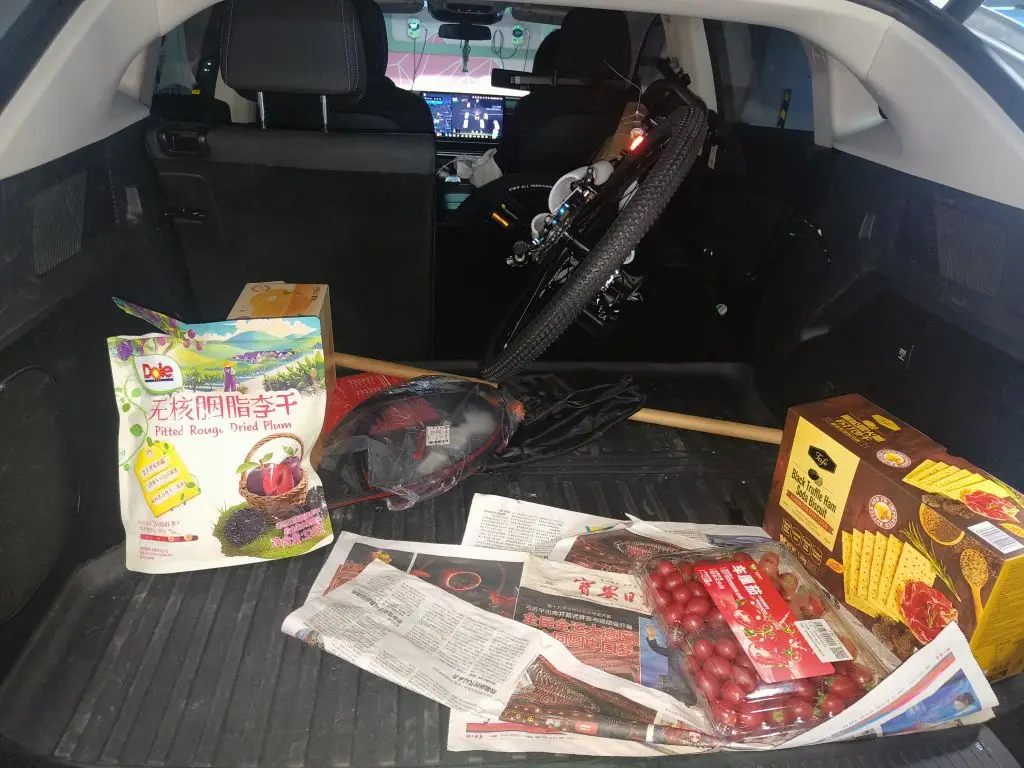 吃完汤圆,去山姆给娃买自行车,24寸自行车把后排座椅打下来一半,居然可以装得下,还剩好多空间,以后带娃出门骑行在三个人出行下,还能带上娃的自行车。必须给小鹏g6的大空间点赞。