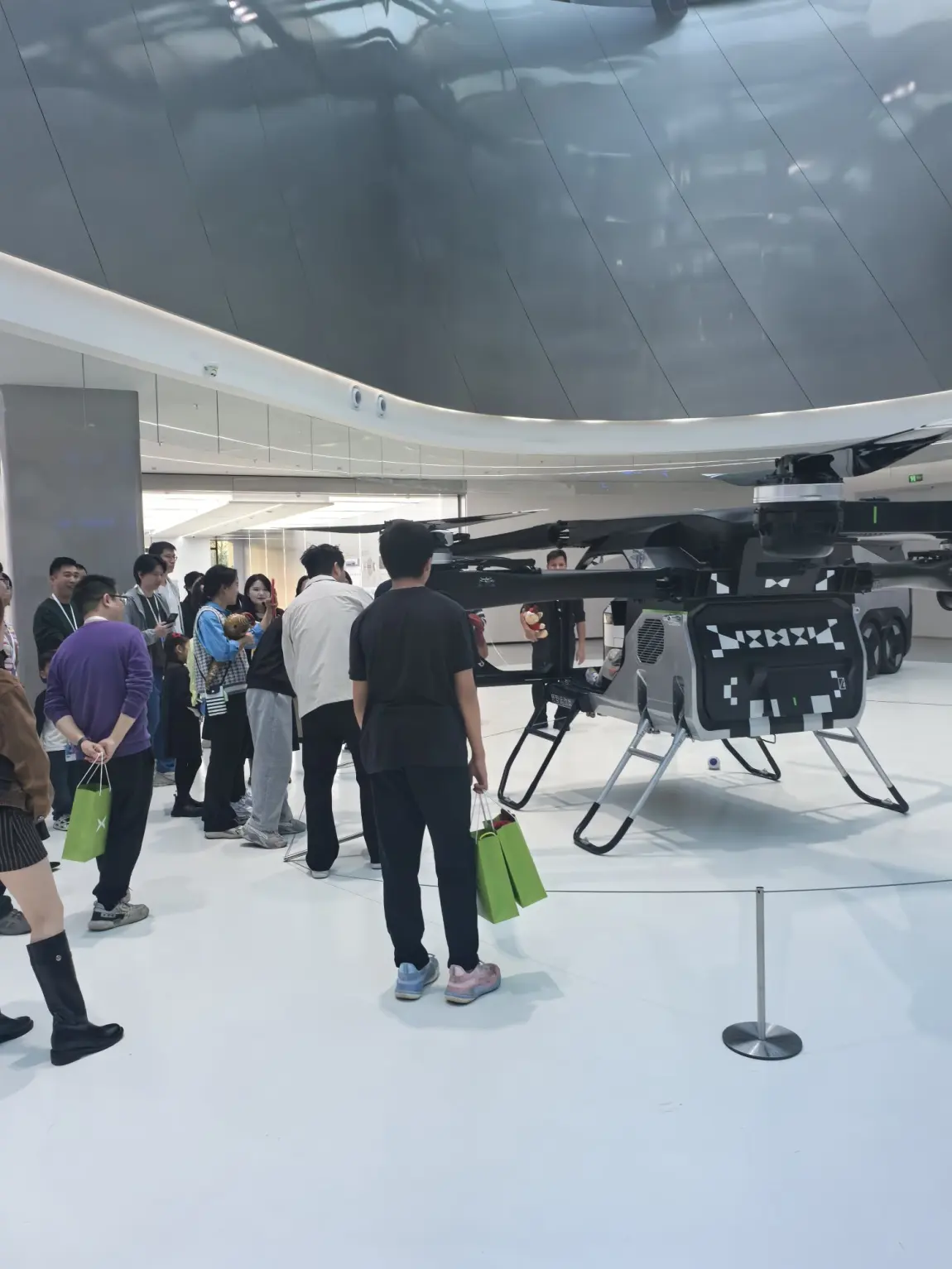 最惊喜的是打卡了超酷的汇天陆地航母和飞行器,那些只在视频里见过的大家伙,近距离看真的太燃了!感觉像是走进了科幻大片现场,老公和娃看得眼睛都直了!金属质感+未来感设计,每一处细节都透着科技范儿,伸手就能摸到的国货硬实力,真的会忍不住感叹“咱们小鹏也太牛了吧”!