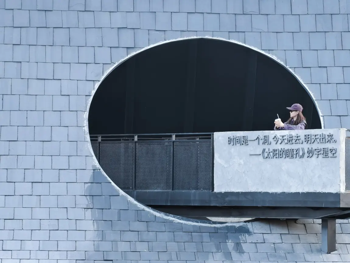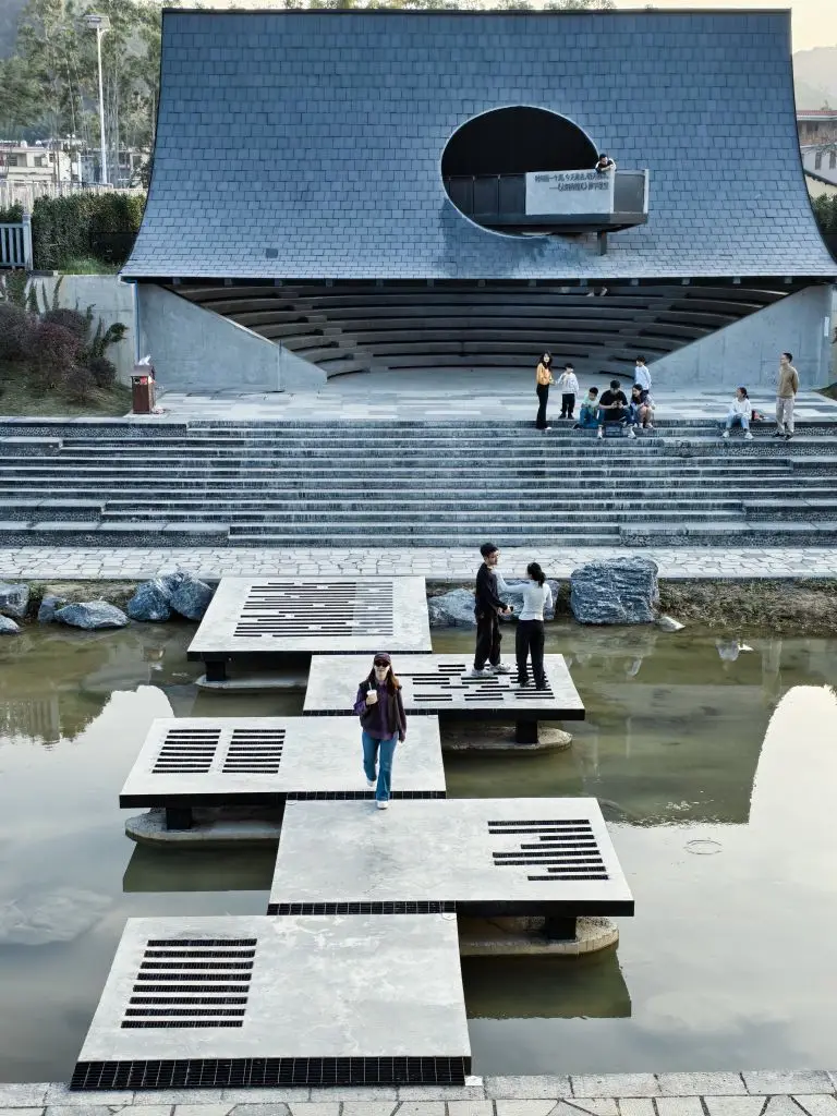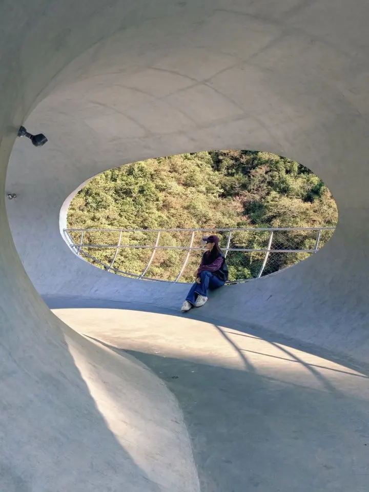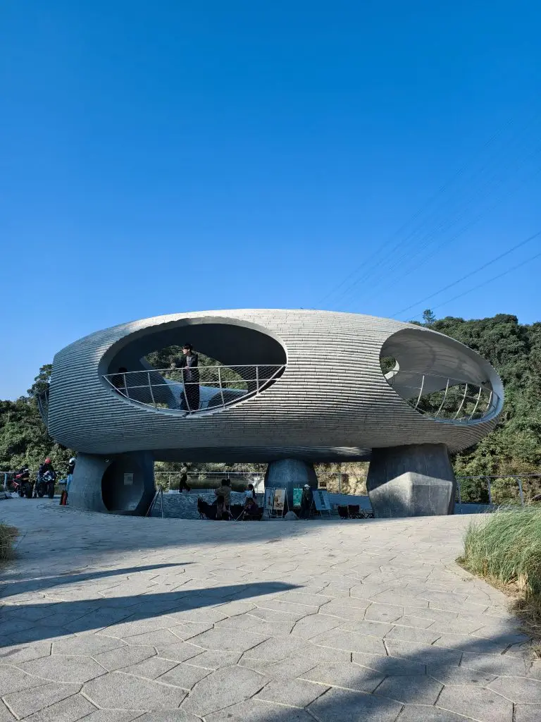 2️⃣第二站是绿屏石摊驿站。这是一个藏在绿意山水里的网红打卡点,光怪陆离的“甜甜圈”型建筑犹如漂浮的UFO,登楼穿行其中,画面时而定格,时而流动,将山河之景尽收眼底。