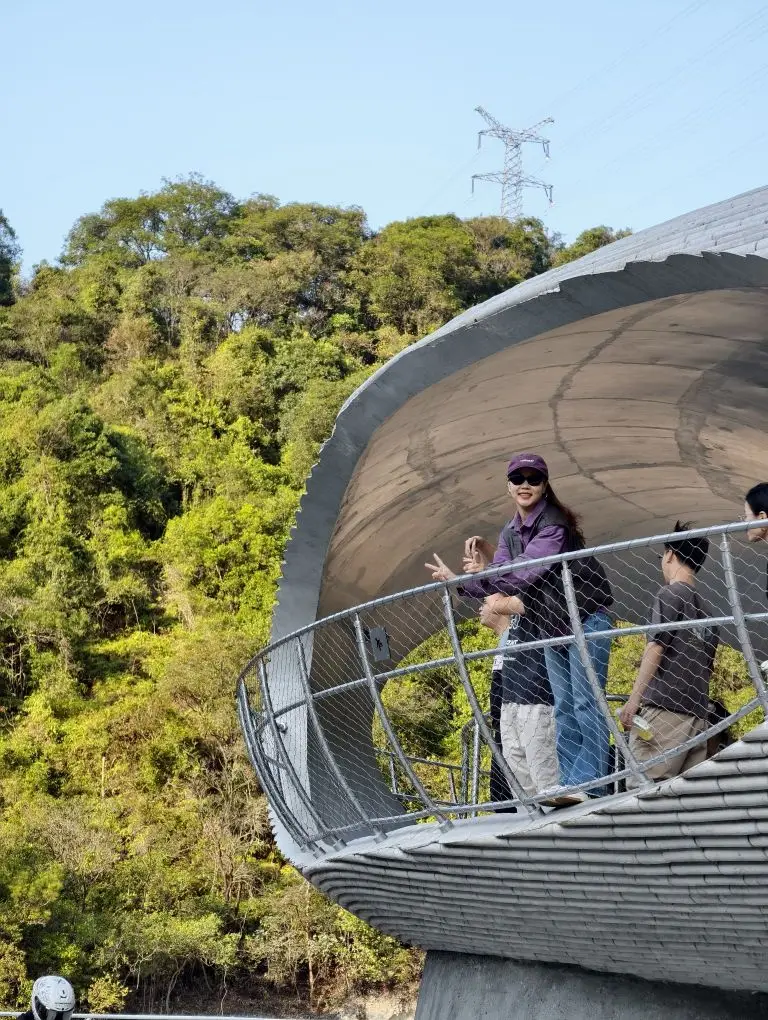 1️⃣到达罗浮山218公路起点后,根据行程,我们第一站打卡显岗水库驿站。有着“惠州小洱海”美誉的显岗水库,晴时水光潋滟,雨时山色空蒙,岸边草木葱茏。湖光山色和小鹏车的科技感相映成趣,随手拍都是大片。