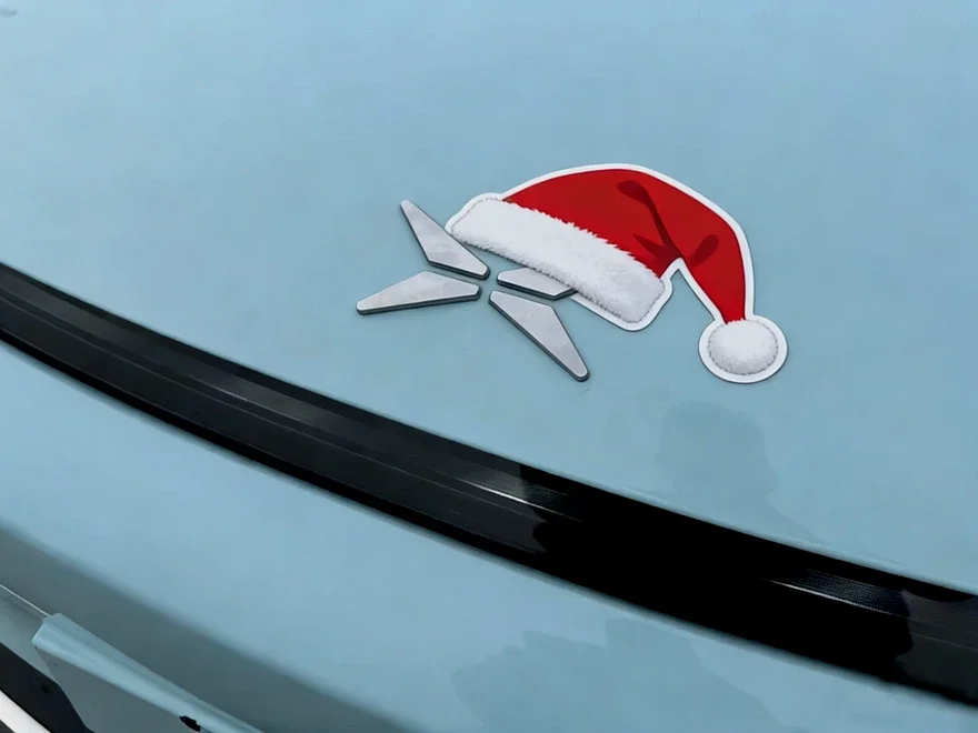 小鹏车标代表着科技、智能的品牌内核,而圣诞帽是温暖、欢乐的节日象征,二者结合是“硬核科技”与“柔软温情”的对话。🎄设计通过给冰冷的金属车标戴上圣诞帽的童趣巧思,消解了汽车工业的距离感,让车主感受到品牌在节日里的温度,同时契合