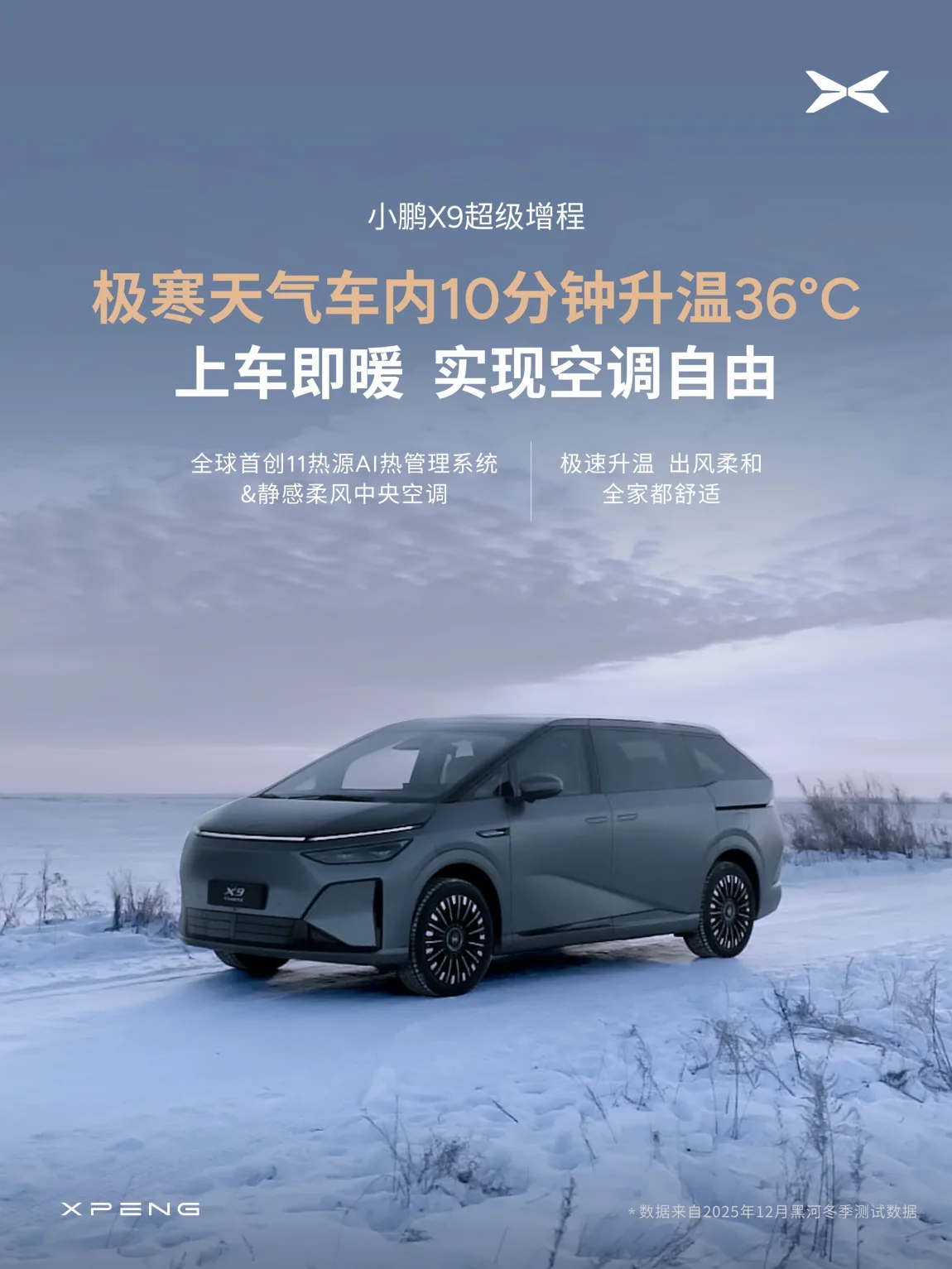 小鹏X9超级增程黑河极寒座舱升温挑战: