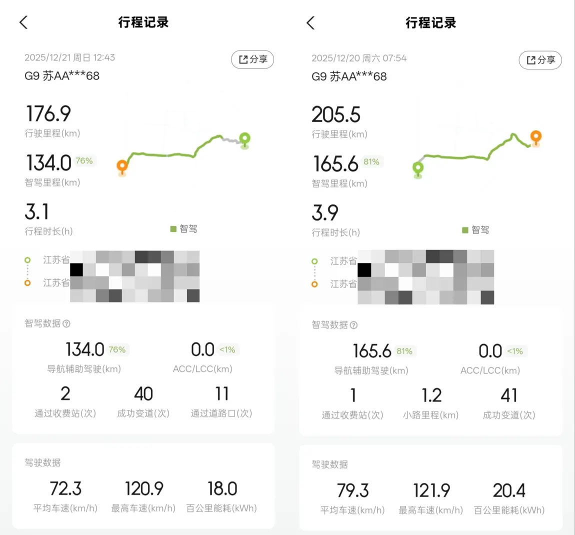 👉👉整个来回路程,小鹏 G9 的表现堪称惊艳。即使在低温环境下,它的电耗控制依然十分出色,从图片上可以看到,两趟旅程电耗依次为18kwh/百公里和20.4kwh/百公里,智能的能量回收系统,让每一次刹车都能转化为电能,为车辆续航提供了有力保障。看到这个数据,我心中不禁对这款车的节能技术赞叹不已👍👍。