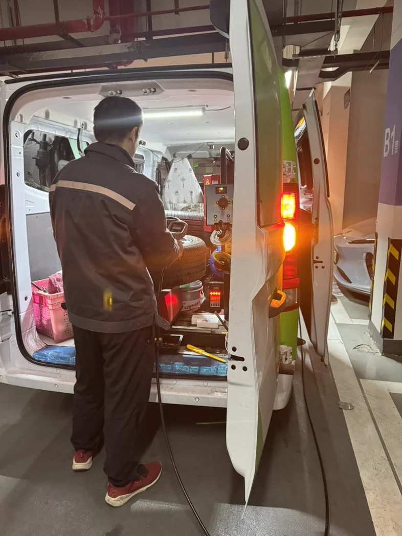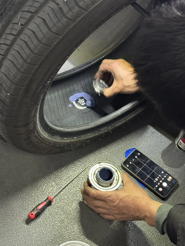 补胎时询问了师傅,外面的补胎操作很少会有补刷粘合剂,但是小鹏的移动服务流程规范更加完善,果然还是专业