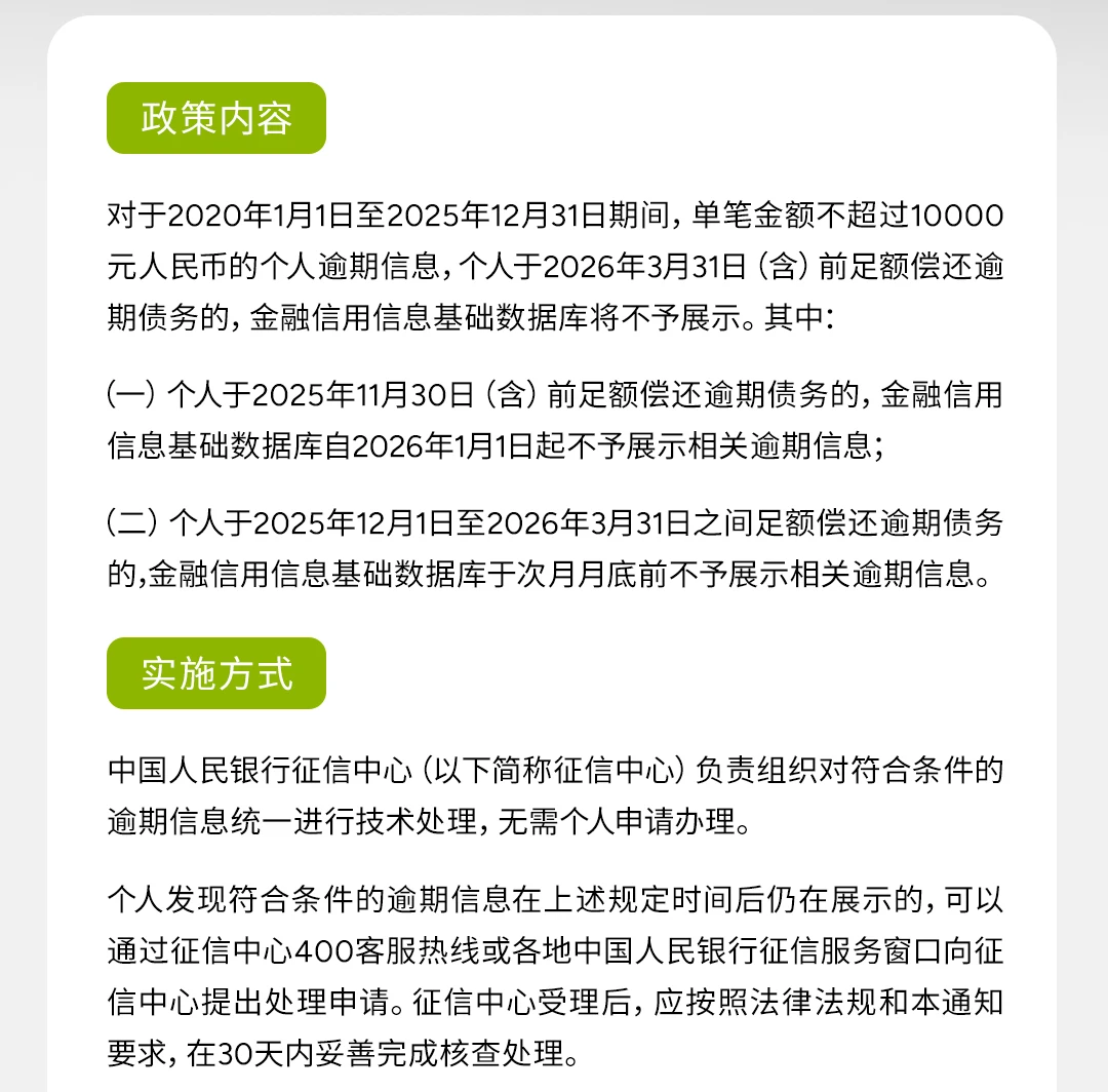 中国人民银行关于实施一次性信用修复政策有关安排的通知