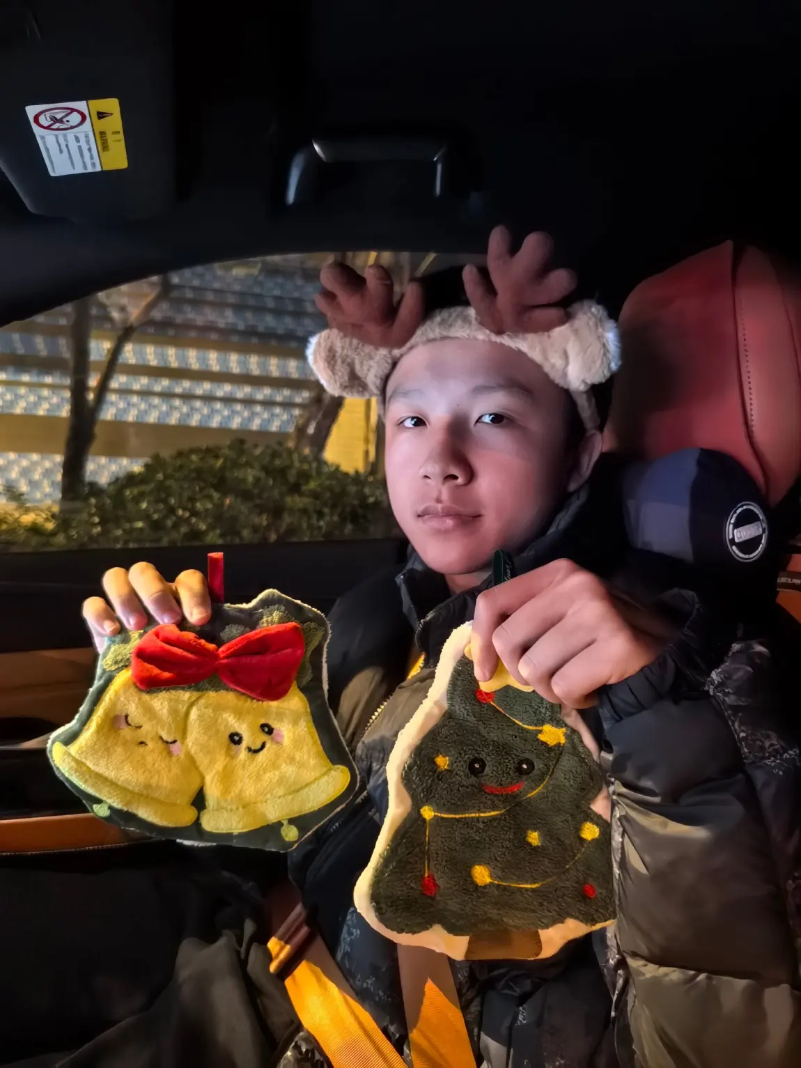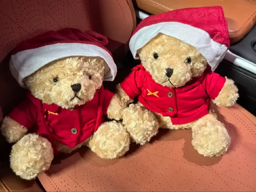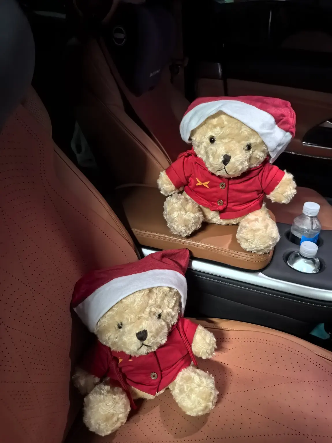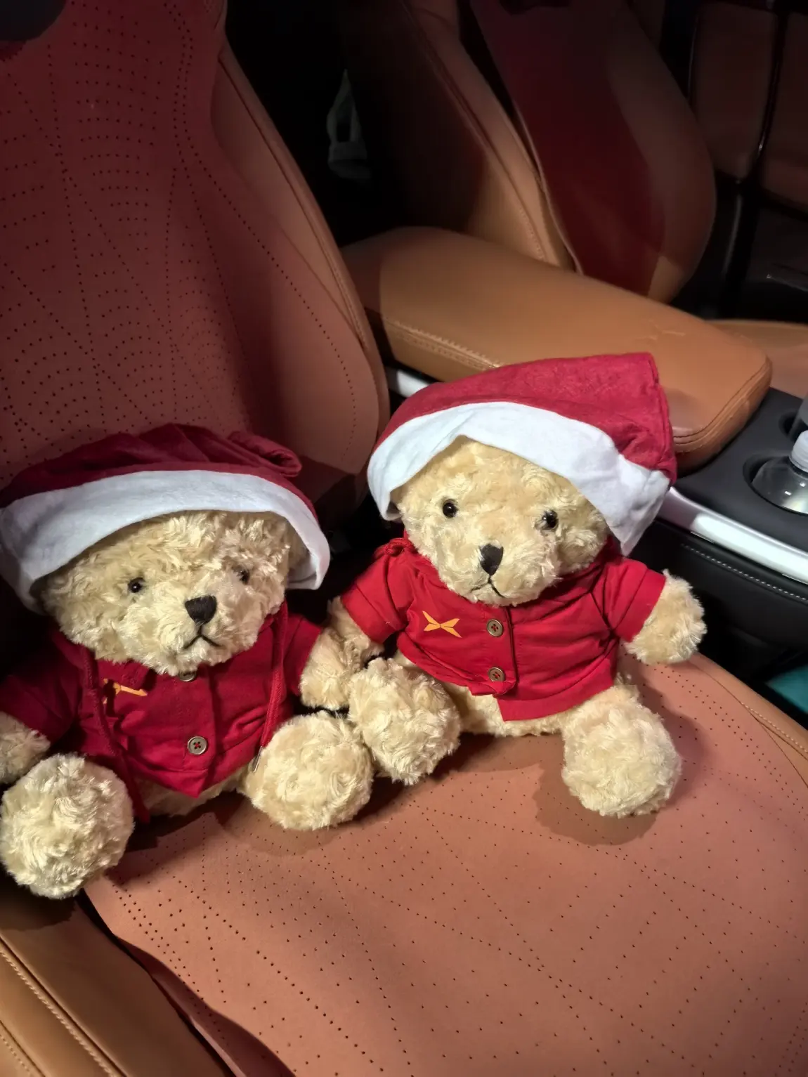 重点夸夸我的圣诞搭子们!鹏厂小熊戴上红色圣诞帽,歪头坐在副驾驶上,瞬间变身“圣诞氛围官”,每次开车都被它萌到笑~