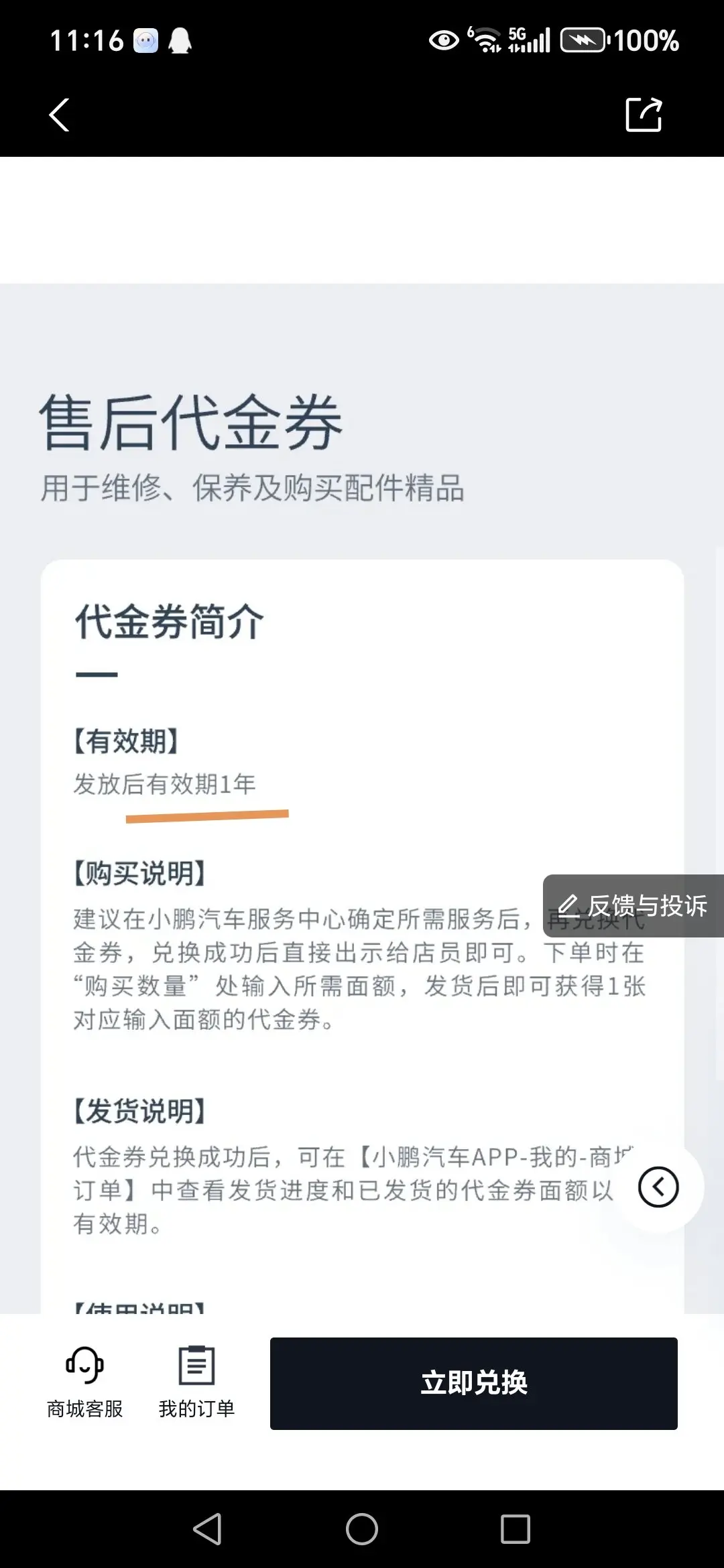 当前商城中“售后代金券”有效期1年、“轮胎券”有效期仅60天,而车辆保养与轮胎更换的周期相对较长(如保养约每年1次,轮胎约4年一换)。对于使用频率较低或计划长期持有的车主而言,券过期易造成资源浪费。因此,恳请鹏厂推出有效期5年的售后代金券及轮胎券,使积分到期时可便捷购买,覆盖车辆未来生命周期,让实惠真正落到实处。