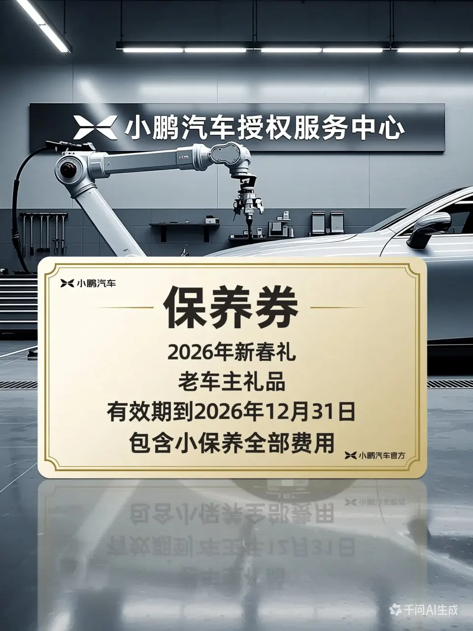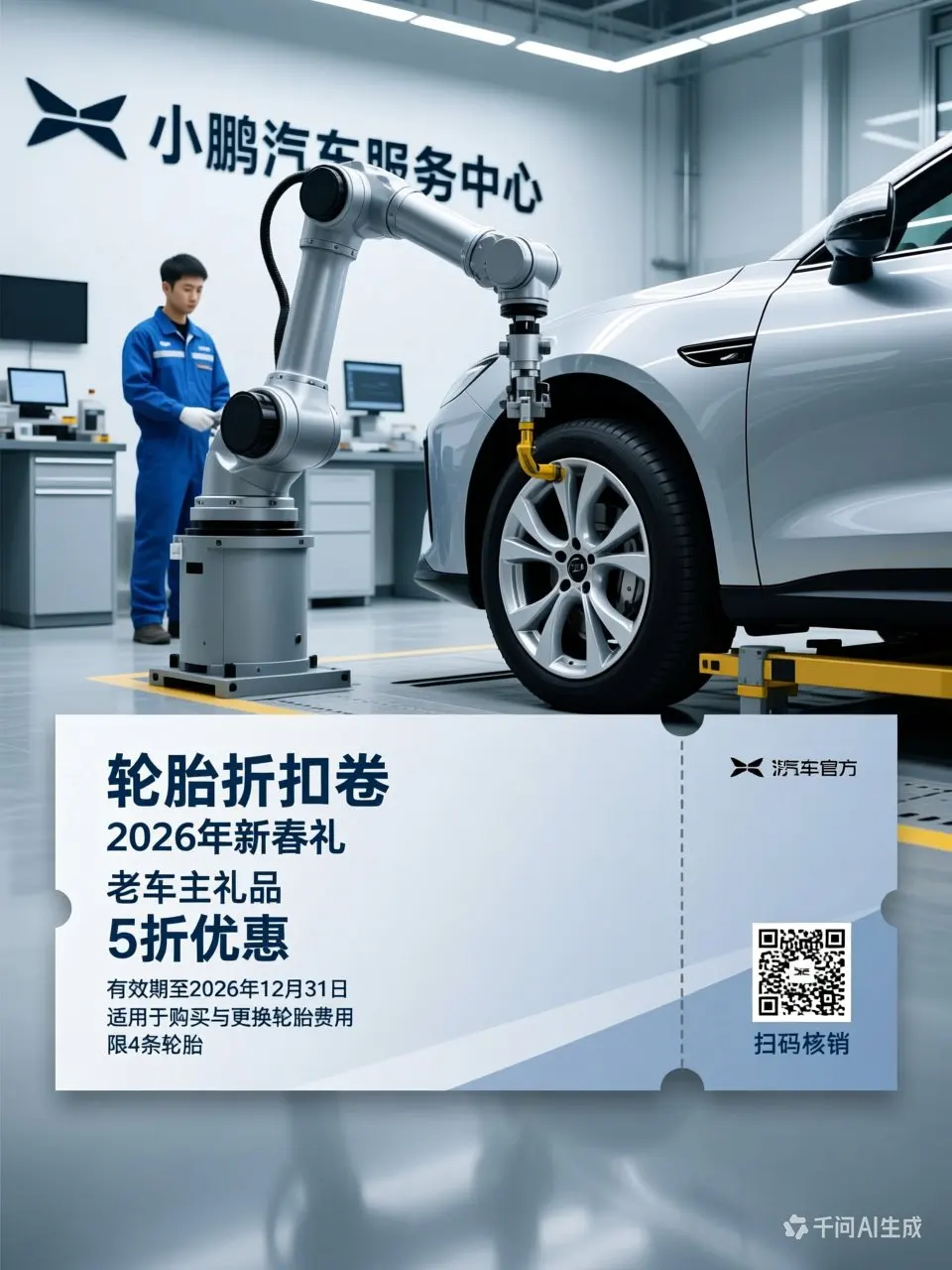 鹏厂始终以用户为中心,若能借春节团圆之际,为老车主赠送1张维修保养券(覆盖年度基础保养)及1张轮胎折扣券(适用于4条轮胎),必将传递品牌温度,让鹏友们在万家灯火中感受到鹏厂的感恩之心。此举既契合传统节日的祝福氛围,亦是对老车主长期支持的切实回馈。