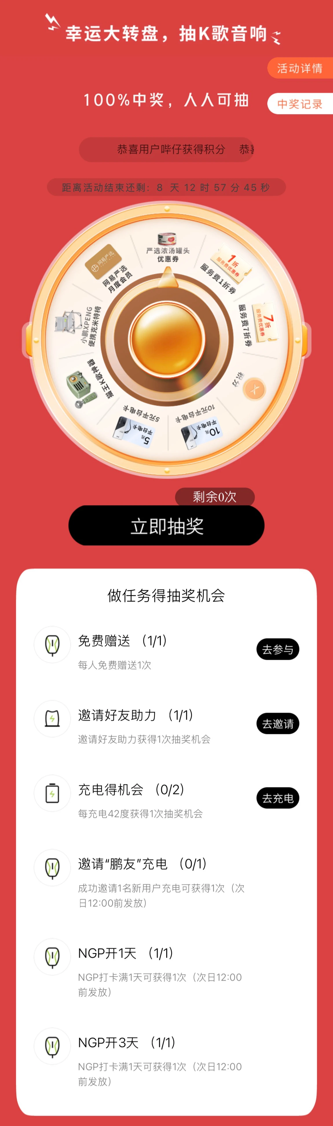 ✨跨年福利再升级,福利直接拉满!人人可抽,100%中奖!12月满电惊喜,锁定小鹏充电!