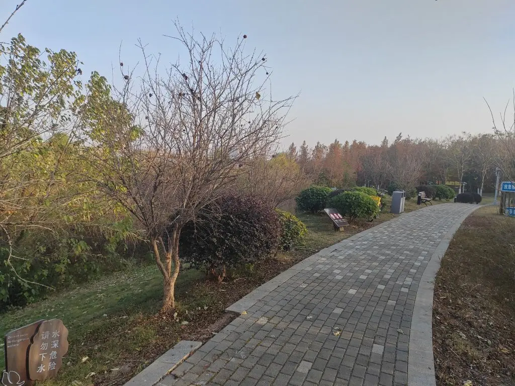 随林荫小道,漫步前行,悠然自得。