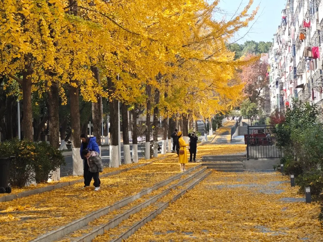 回家的路上,一路都是金黄的银杏,风一吹,叶子簌簌往下掉,铺了一地的金毯子。车轮碾过落叶,沙沙作响,阳光透过叶缝洒下来,斑驳的光影晃得人心情都变好了。(可惜狗子不配合拍照,难得这么好的美景)