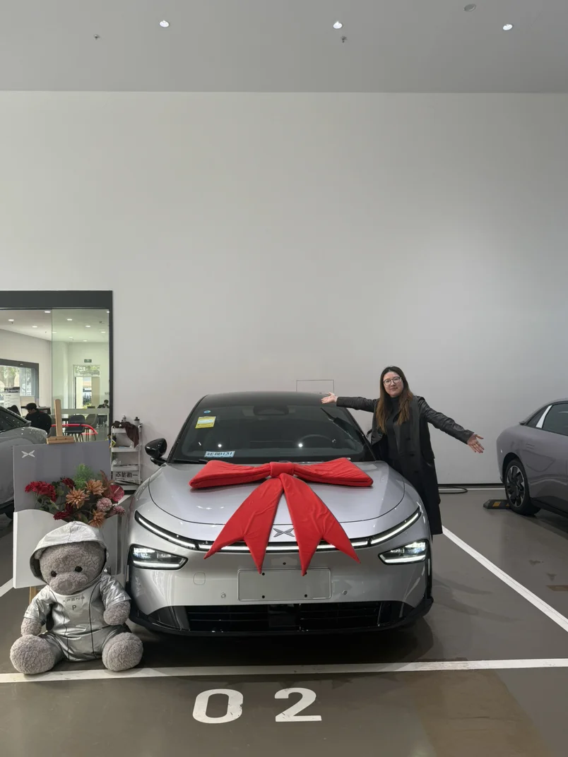 到达交付中心后,很快领到了小鹏太空熊玩偶、定制脚垫和U盘等首任车主礼。验车时,核对了车辆铭牌、车架号等基础信息,检查了外观、内饰、功能和随车物品。手续办理时,核对尾款、保险费和上牌费明细后完成支付,签署交付确认书和保险合同。等待保险生效时,专员讲解车辆用法,随后进行提车仪式。