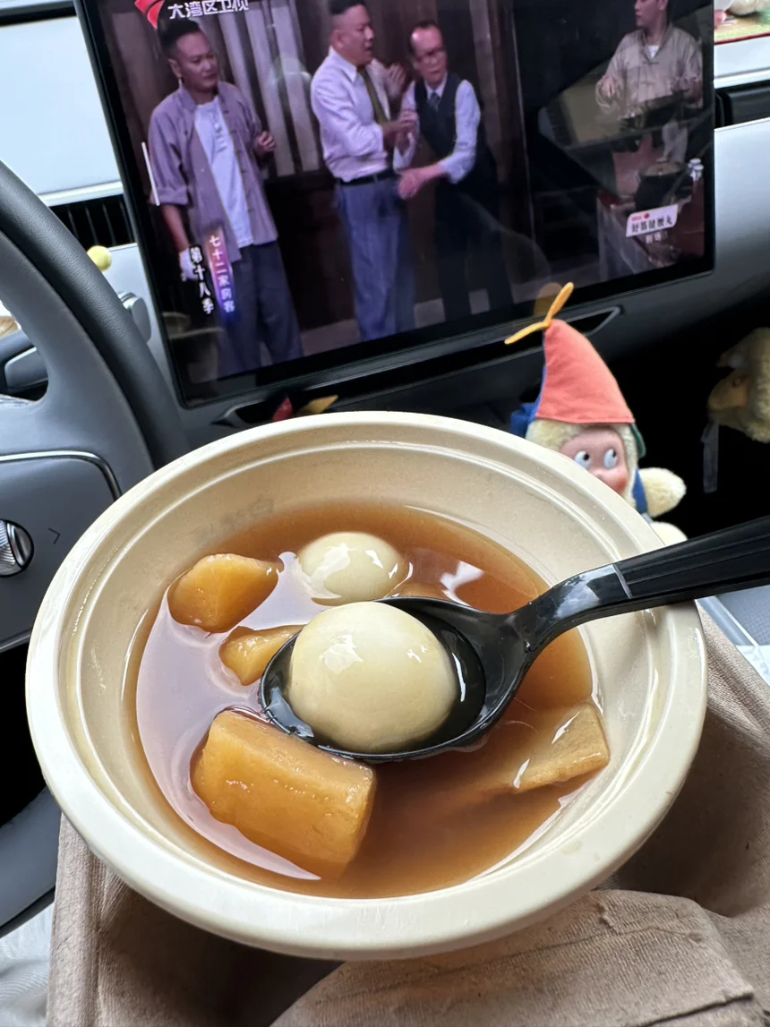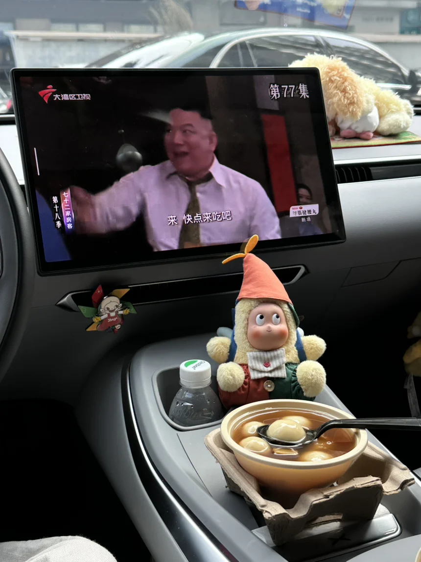 吃东西怎么能少得了电子榨菜?打开车机应用播放电视剧📺,热闹的剧情,配着软糯香甜的汤圆,一口下去,满是熨帖的暖意。