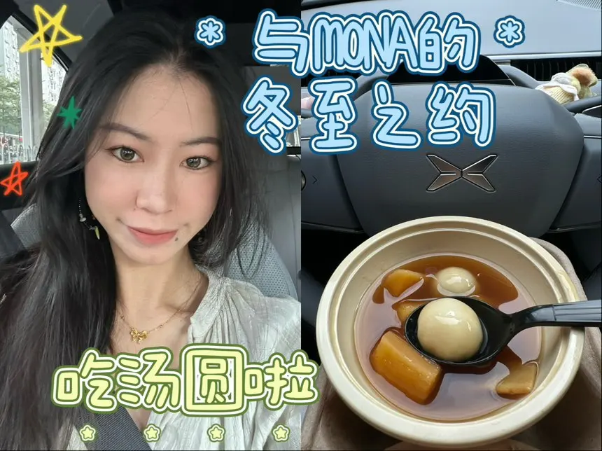 #冬至的最佳打开方式# 今年冬至,照旧在忙碌的工作节奏里度过。趁着午休的间隙,我揣着一份热乎乎的木薯汤圆糖水,扎进我的专属小空间——小鹏MONA里。