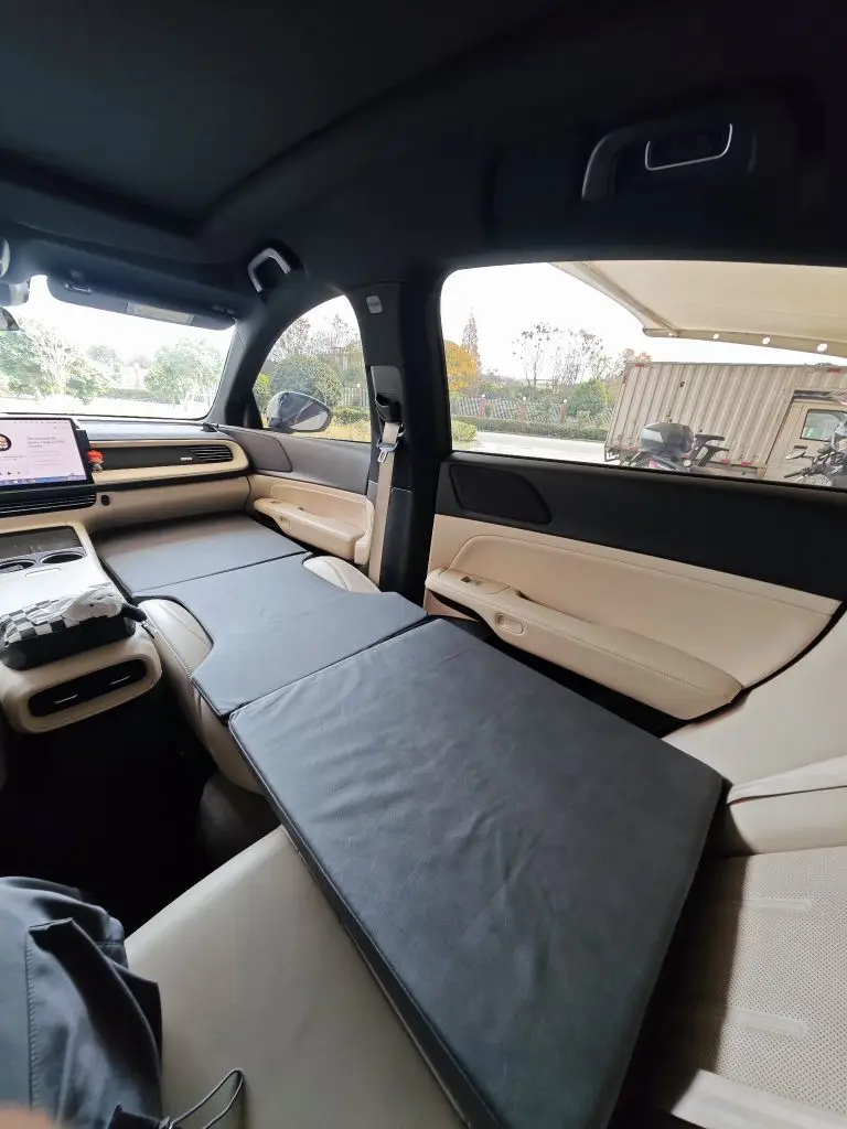 这是我床车搭建的床车模式。副驾放倒,使用这款找平床垫,轻松收纳。如果有双人使用场景,那就用官方P5的前排床垫🛏️,也是很舒服的!