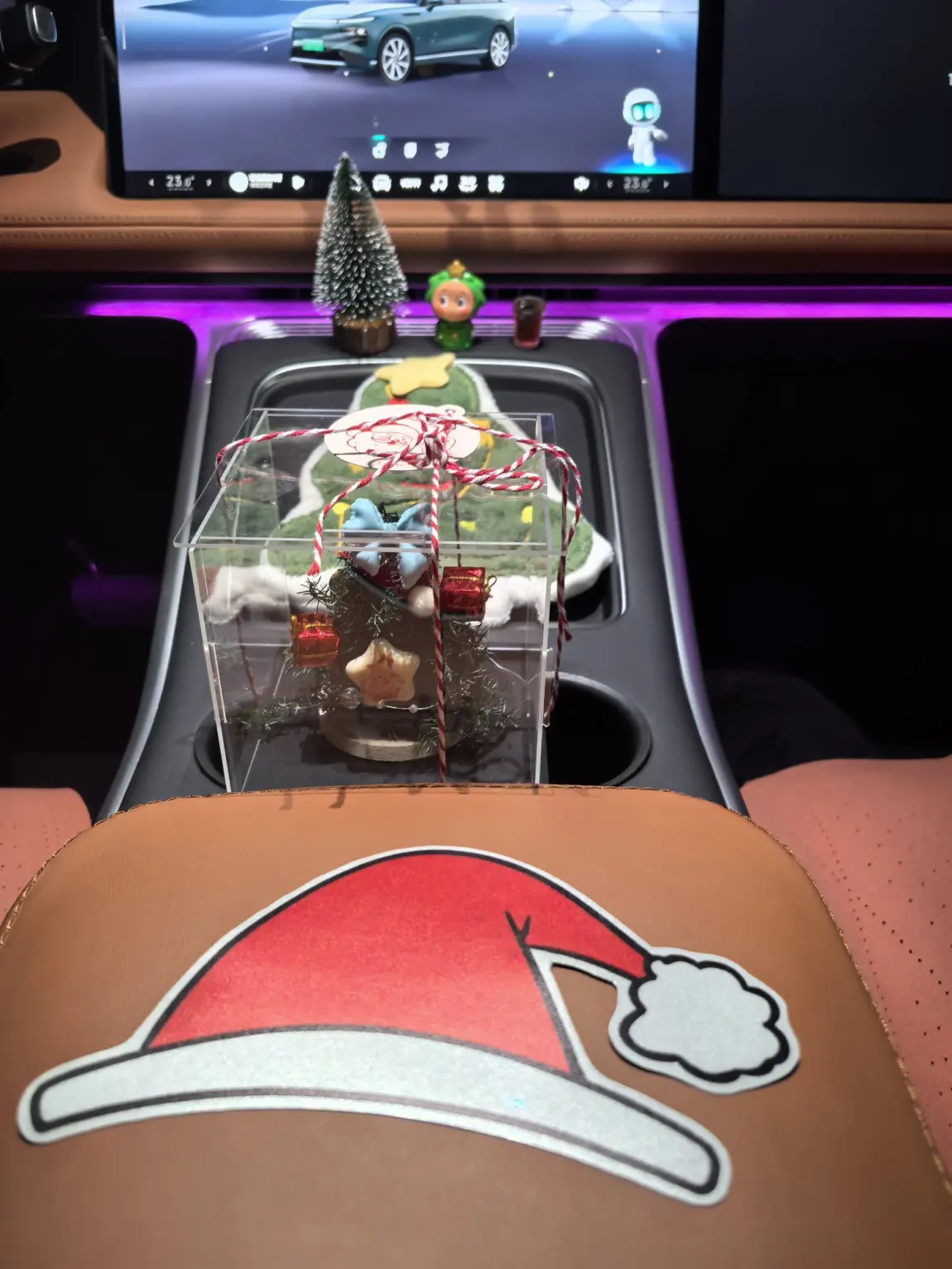 而且我还给我的小P装扮了圣诞小装饰!圣诞树、圣诞小熊、迷你小玩偶、为小鹏车标带个圣诞帽,怎么看都是一幅画,坐进车里就被满满的节日氛围裹住,拍照发圈都超出片。