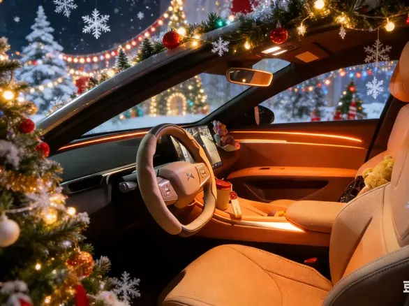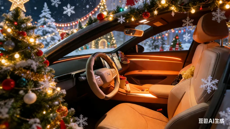 把圣诞童话搬进我的小鹏Mona,氛围灯、小摆件、圣诞树全安排上,开着它出门,连风都是甜甜的圣诞味~