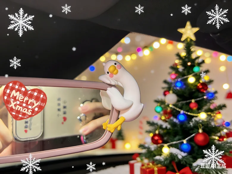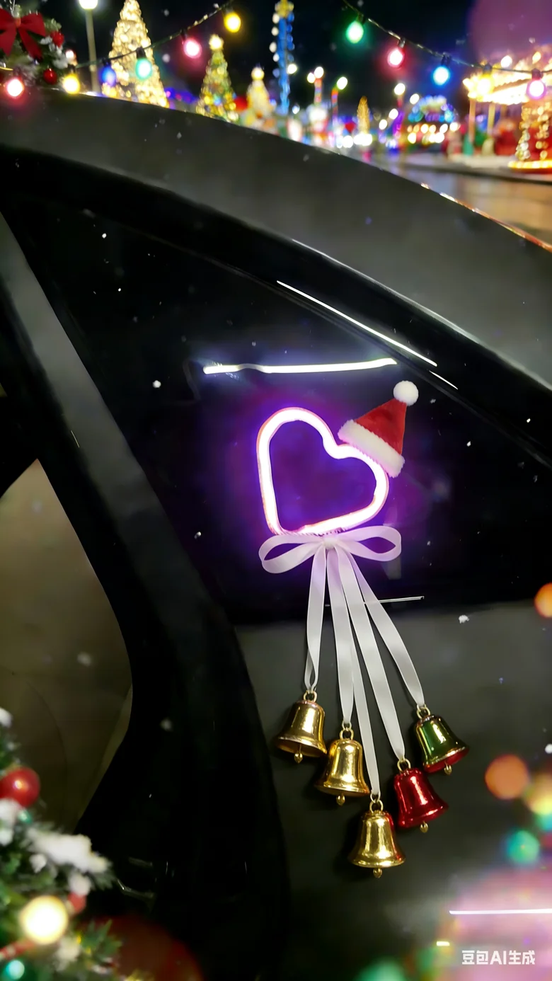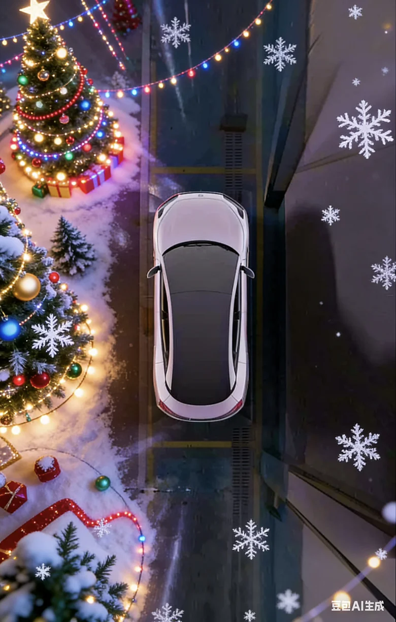 🎄车灯眨着圣诞眼、车窗挂着爱心铃铛,雪地里被圣诞树簇拥着,直接美成圣诞限定风景~