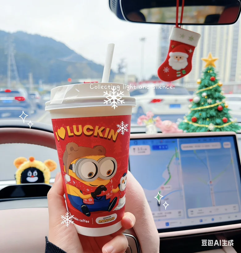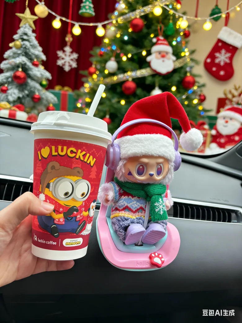 Mona装满了圣诞小美好,中控屏画圣诞树、玩偶戴圣诞帽,连后视镜都挂着圣诞袜,配着Labubu这份可爱,圣诞仪式感直接拉满~