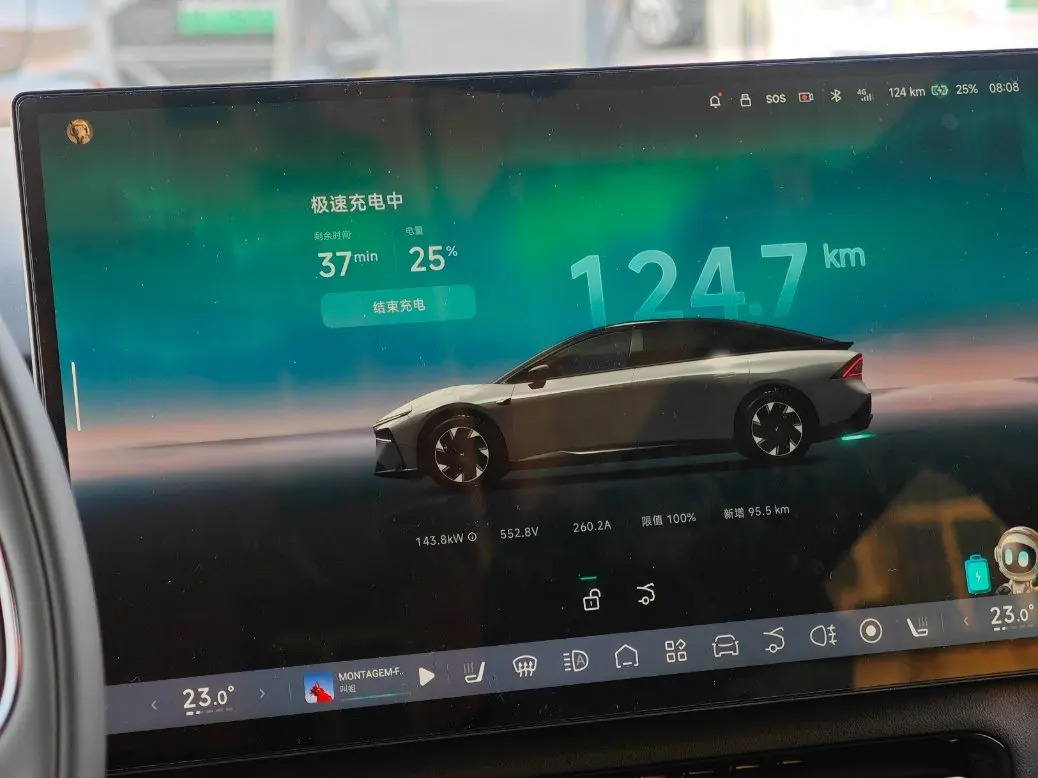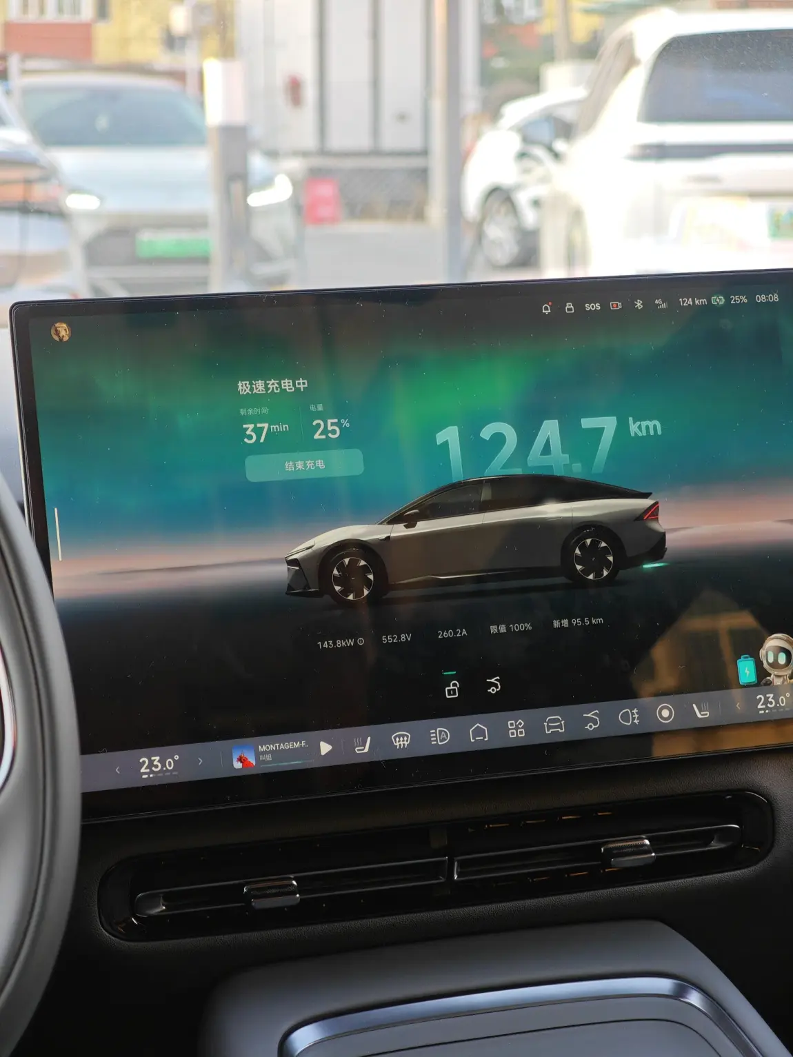 开小鹏P7+充电完全不用在寒风里傻等,锁上车门就是温暖小窝,座椅加热一开,再打开空调调到舒适温度,刷会儿剧听首歌的功夫,电量就悄悄涨起来了,惬意得很。