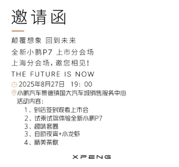 8月是满载热爱的月份。我与家人朋友完成了首个2000km往返自驾之旅,更在27日受邀参与小鹏“颠覆想象 回到未来”全新P7上市发布会。在景德镇国大小鹏4S店,我与几十个景德镇鹏友欢聚一堂,沉浸式试乘试驾全新P7,在茶香与小龙虾的陪伴中,共同见证新品亮相,这份因G6结缘的鹏友情谊,让用车生活更添温度。