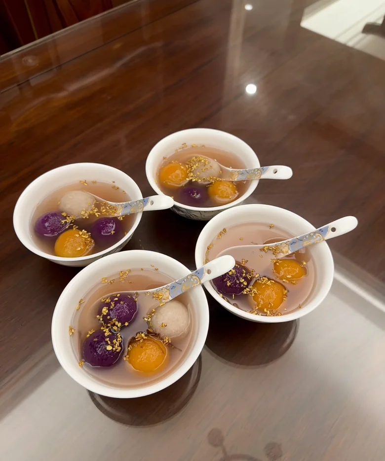 回到家,后备箱里的食材被一一搬出,厨房瞬间变成热闹的“冬至战场”:处理海鲜、调制鱼生蘸料、炸酥肉、煮汤圆,忙得不亦乐乎。窗外天色渐暗时,一桌丰盛的冬至宴已摆上餐桌:冰镇鱼生鲜爽清甜,白切鸡嫩滑入味,炸酥肉外酥里嫩,还有撒着桂花的彩色汤圆在碗中浮沉,可乐的气泡声混着家人的笑语,成了冬至最动听的背景音。这桌宴席的背后,是小鹏一路的陪伴,让从采购到备餐的每一步,都少了奔波的疲惫,多了从容的欢喜。